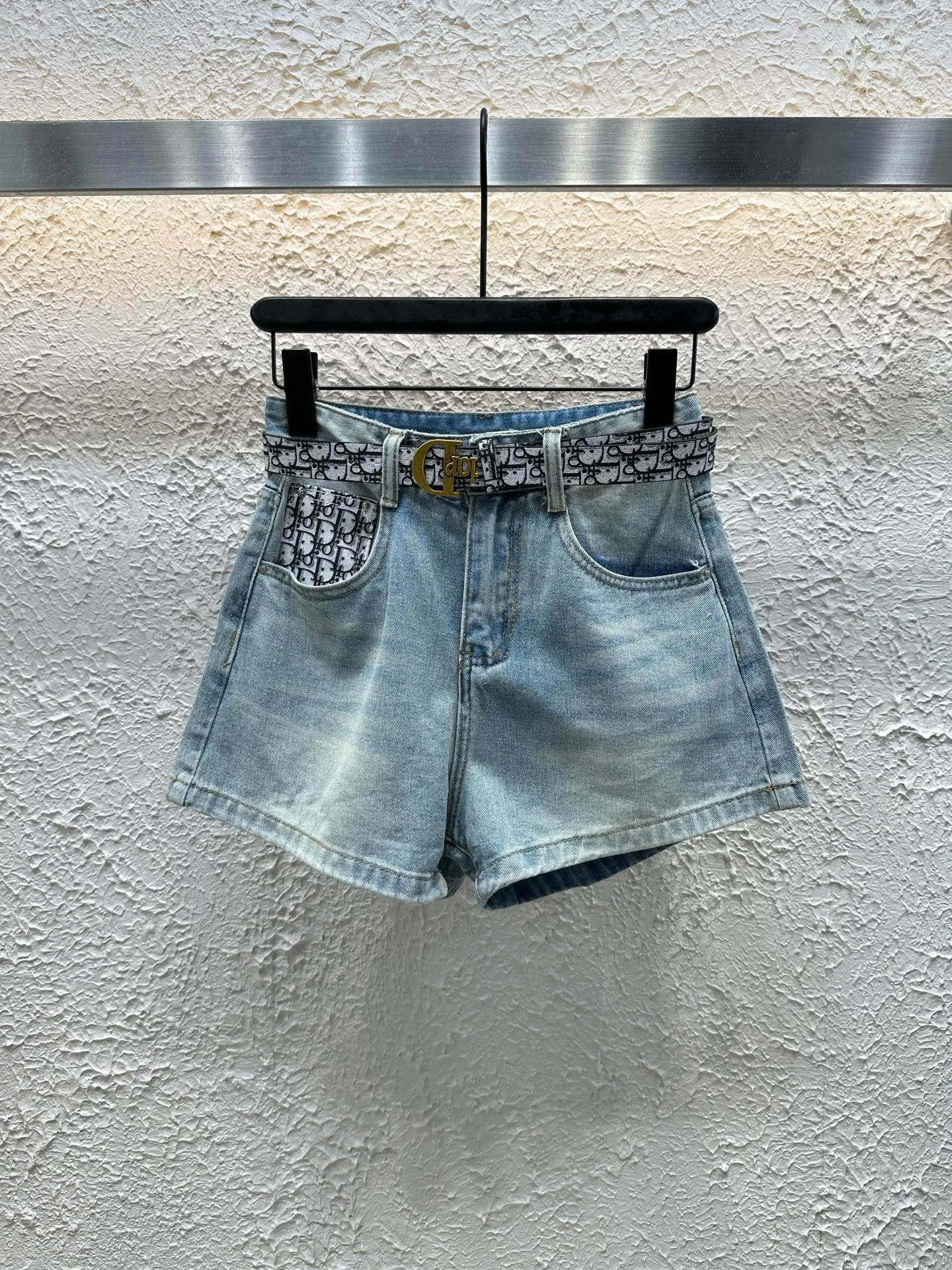 Jeansshorts mit Dior-Monogramm und Gürtel, Vorder- und Gesäßtasche