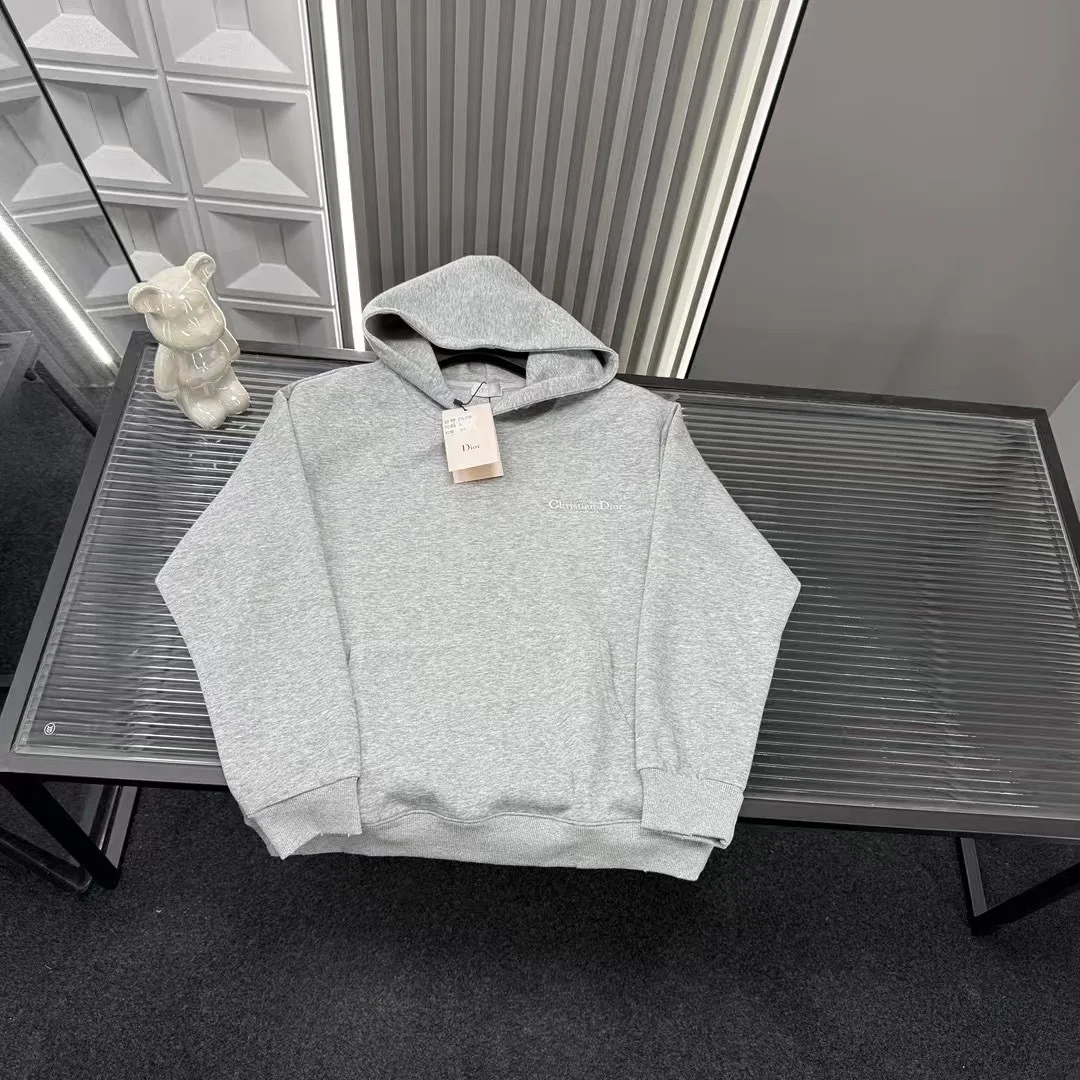 Empfohlene Sweatshirts für den Frühherbst: Kapuzenpullover mit Dior-Logo. Erhältlich in drei Farben und drei Logos, passend zur offiziellen Website. Zoomen Sie hinein, um Details zu sehen. Foto mit der Originalkamera aufgenommen.