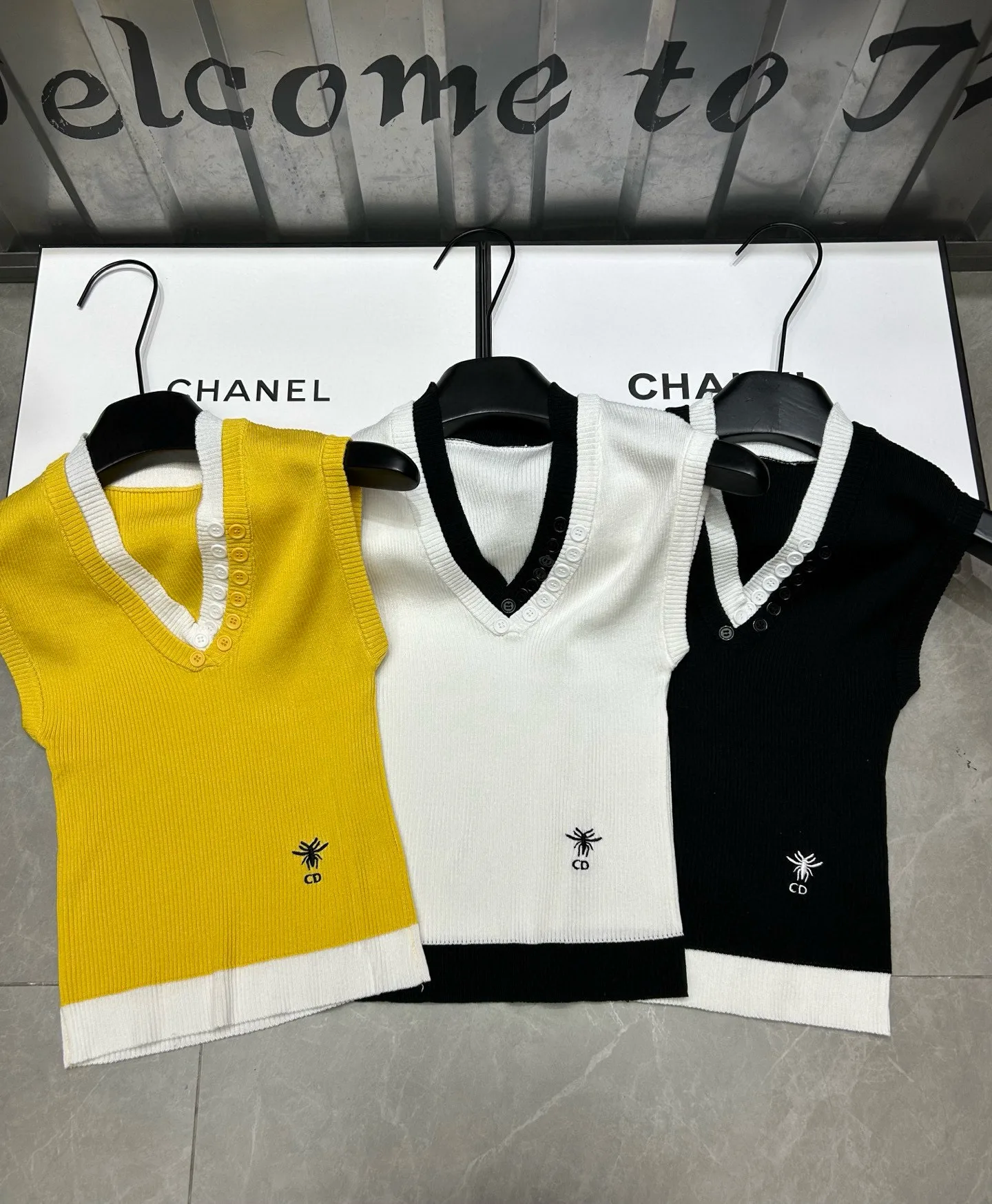 Hochwertige Dior Weste aus gelber Strickstickerei-Kollektion
