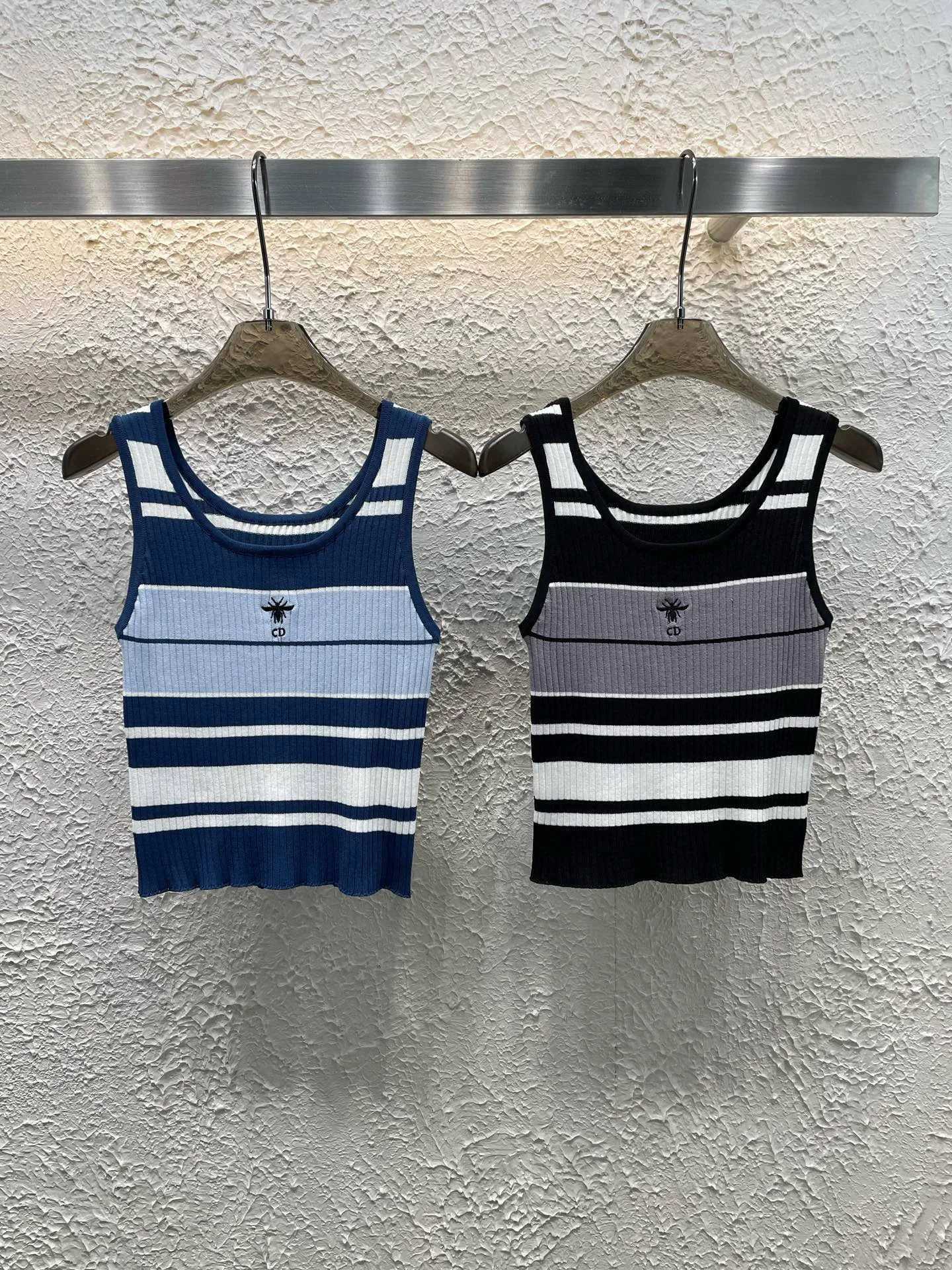 Hochwertige Dior Weste Blauer Strick Bestickter Luxus