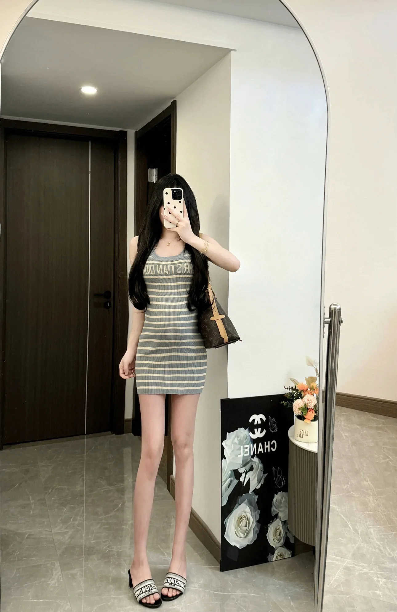 Dior-Monogramm-Jacquard-Strickkleid mit Streifen