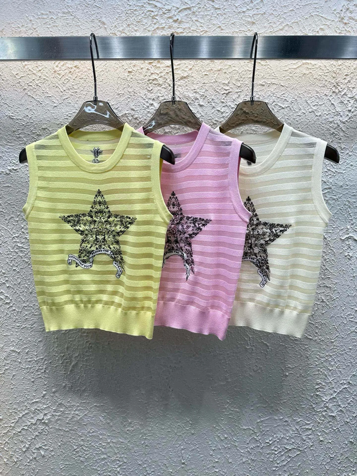 Hochwertige Dior Weste im gelben Strick-Stickerei-Stil