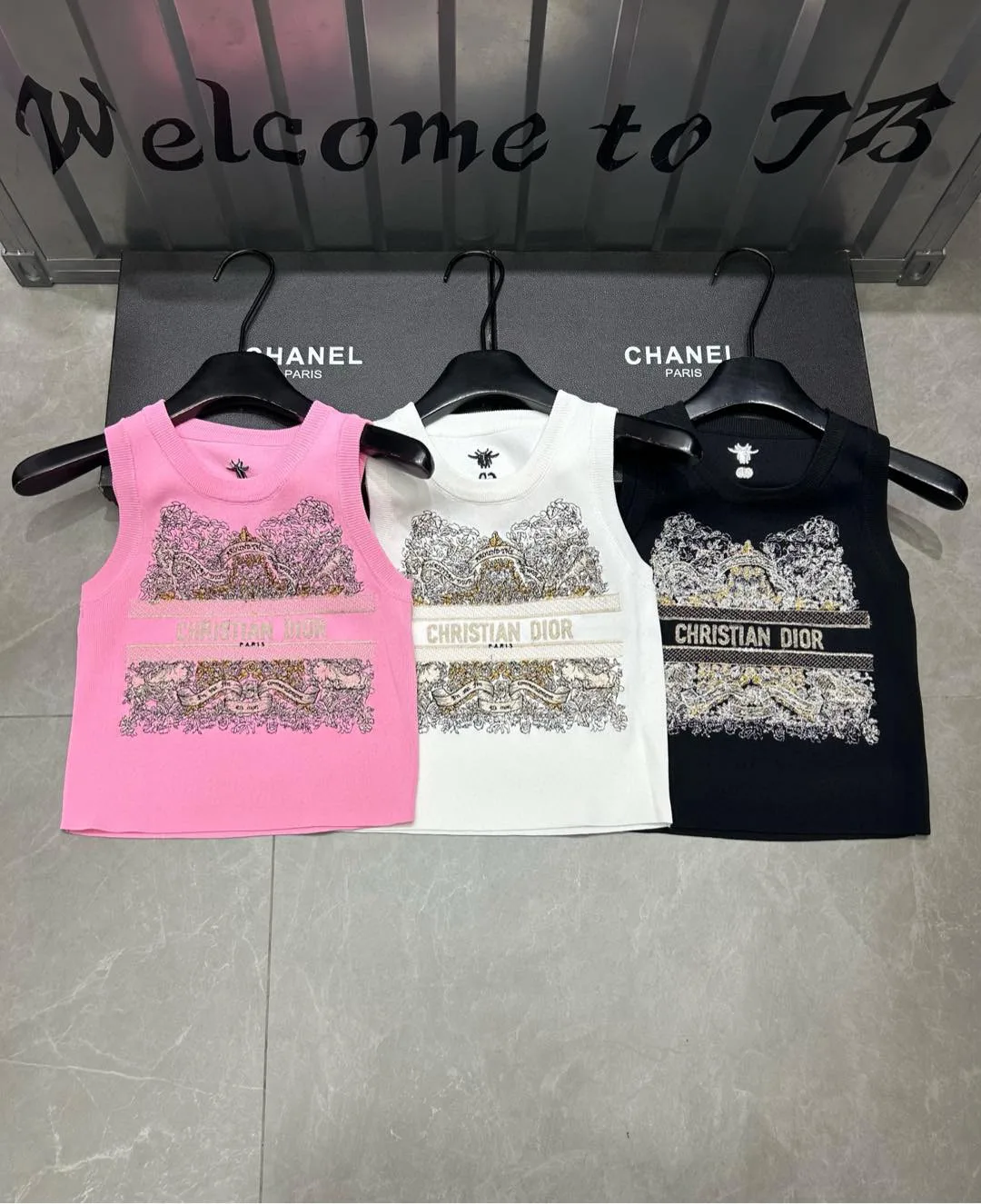 Hochwertige Dior Weste im rosa Strick-Stickerei-Stil