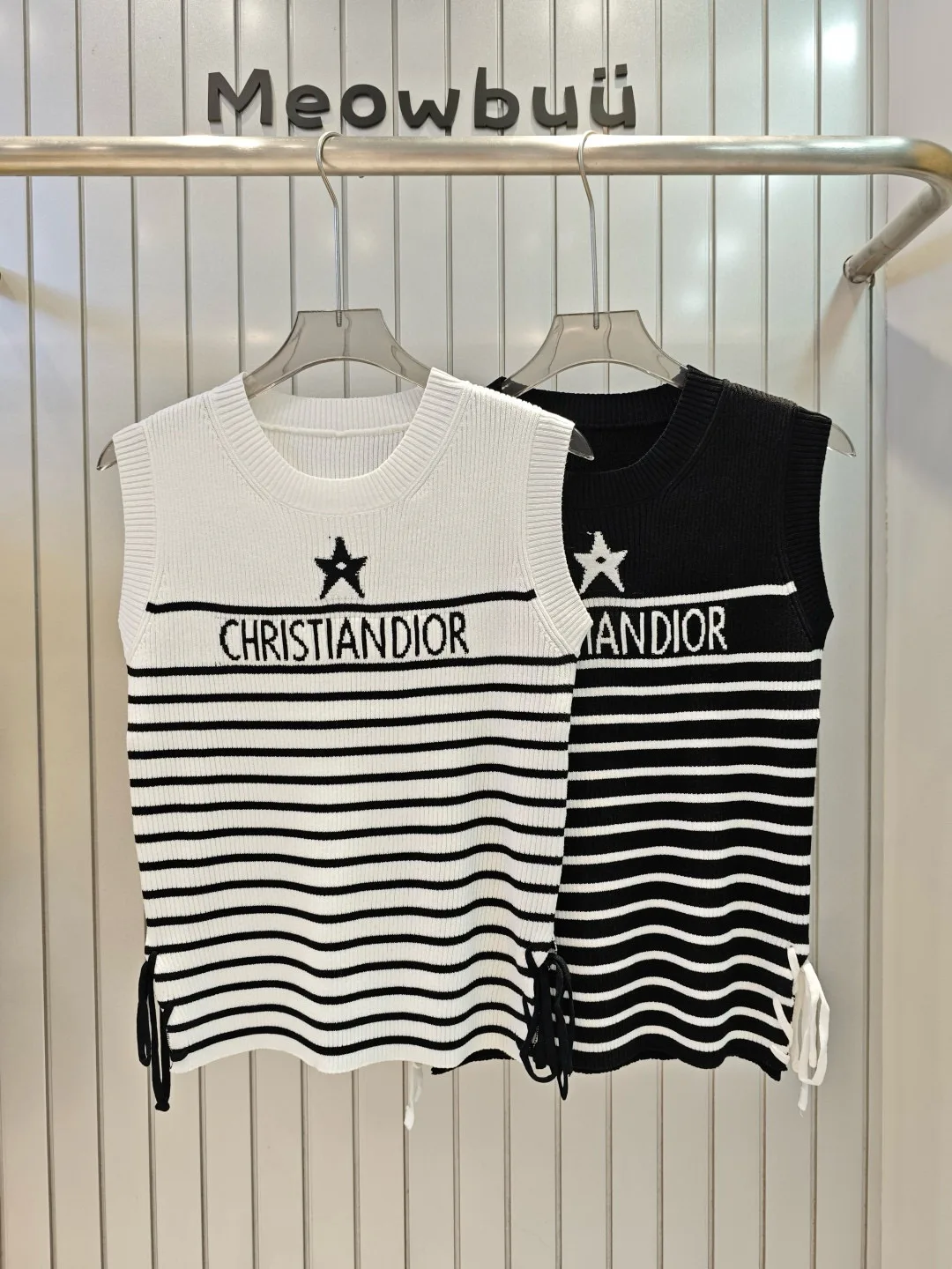 Hochwertige Dior Weste im weißen Jacquard-Strickstil