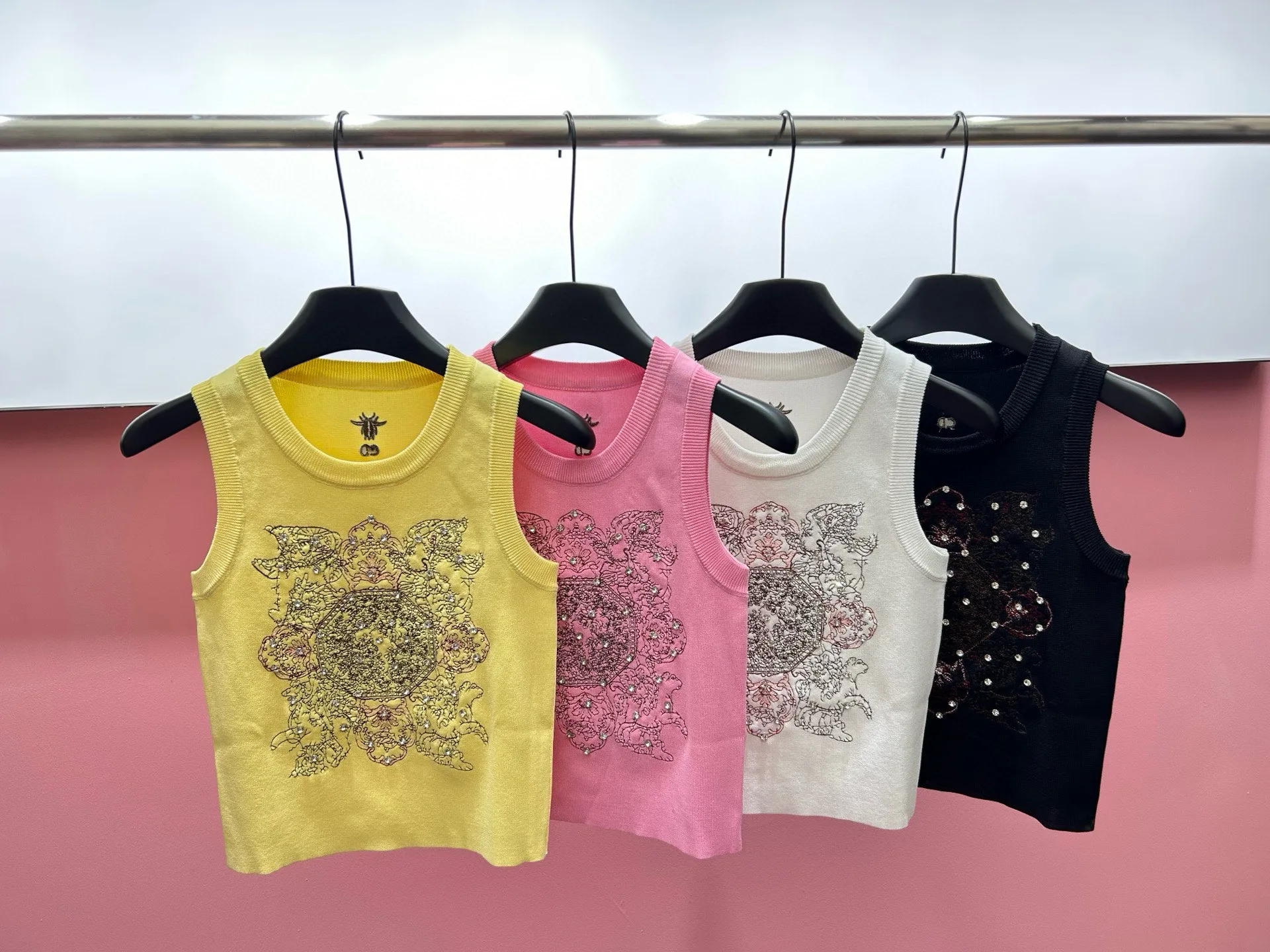 Strickweste mit Rundhalsausschnitt und aufwendiger Stickerei und Strassbesatz mit Dior CD-Bienenlogo