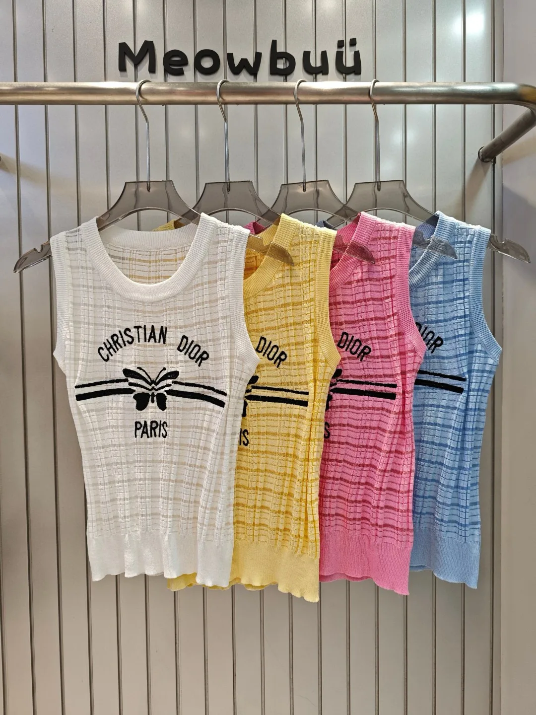 Hochwertige Dior Weste im weißen Strick-Stickerei-Stil