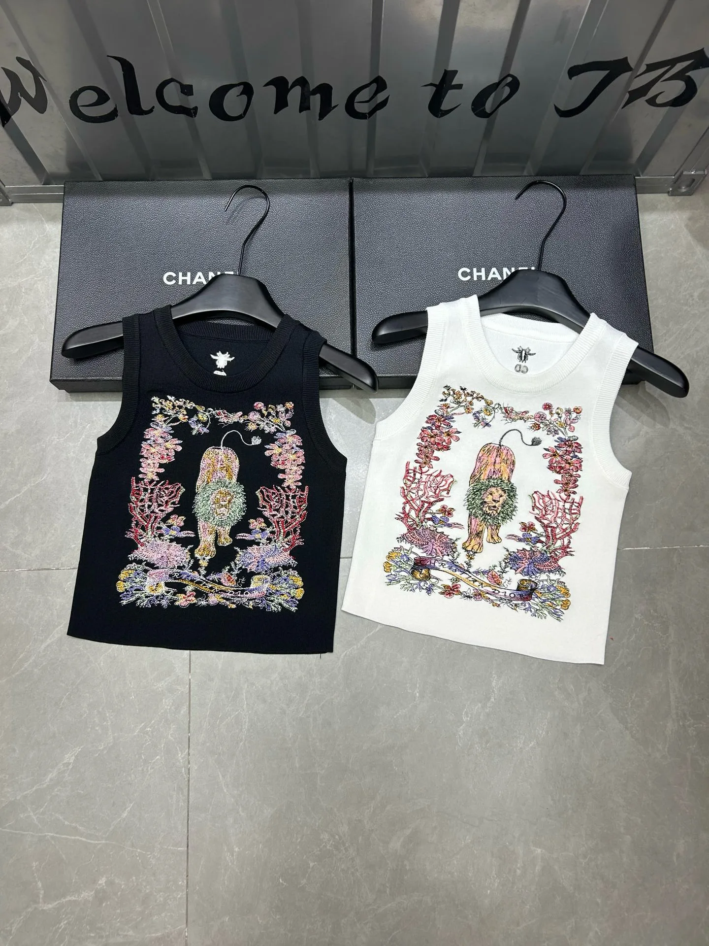 Dior CD Weste mit Rundhalsausschnitt und Blumenstickerei „Bee Lion“