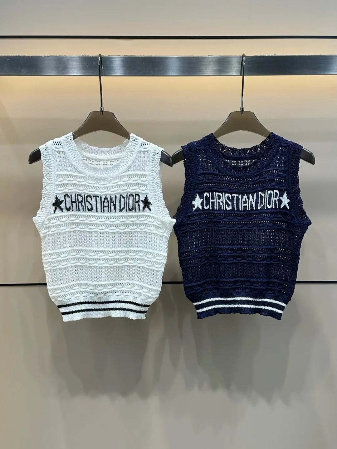 Hochwertige Dior Weste Weiß Strick Jacquard Luxus