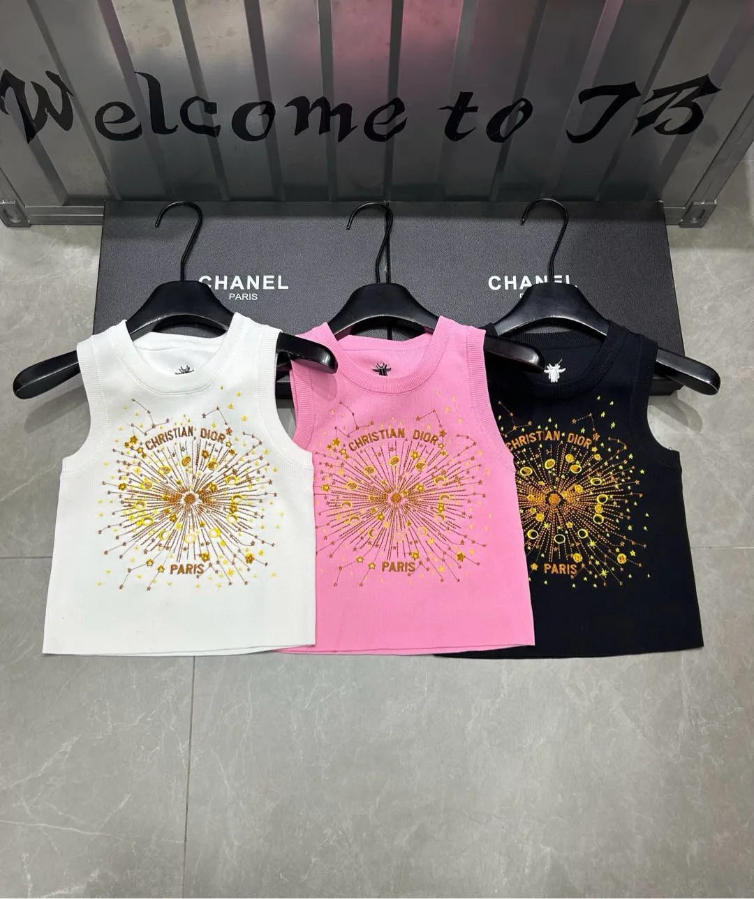 Hochwertige Dior Weste Weißer Strick Bestickter Luxus