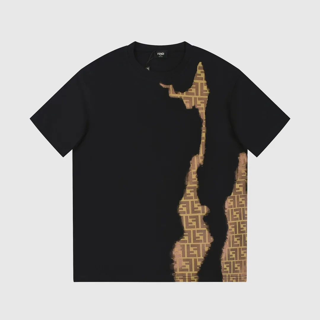 (Top-Modell, hochwertigste Ausführung) Fendi FF Classic Farbverlauf-Logo Rundhals-Kurzarm-T-Shirt