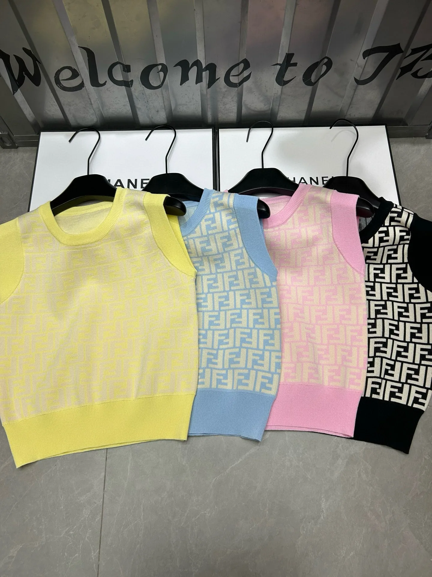 Hochwertige Fendi Weste Schwarz Strick Jacquard Luxus