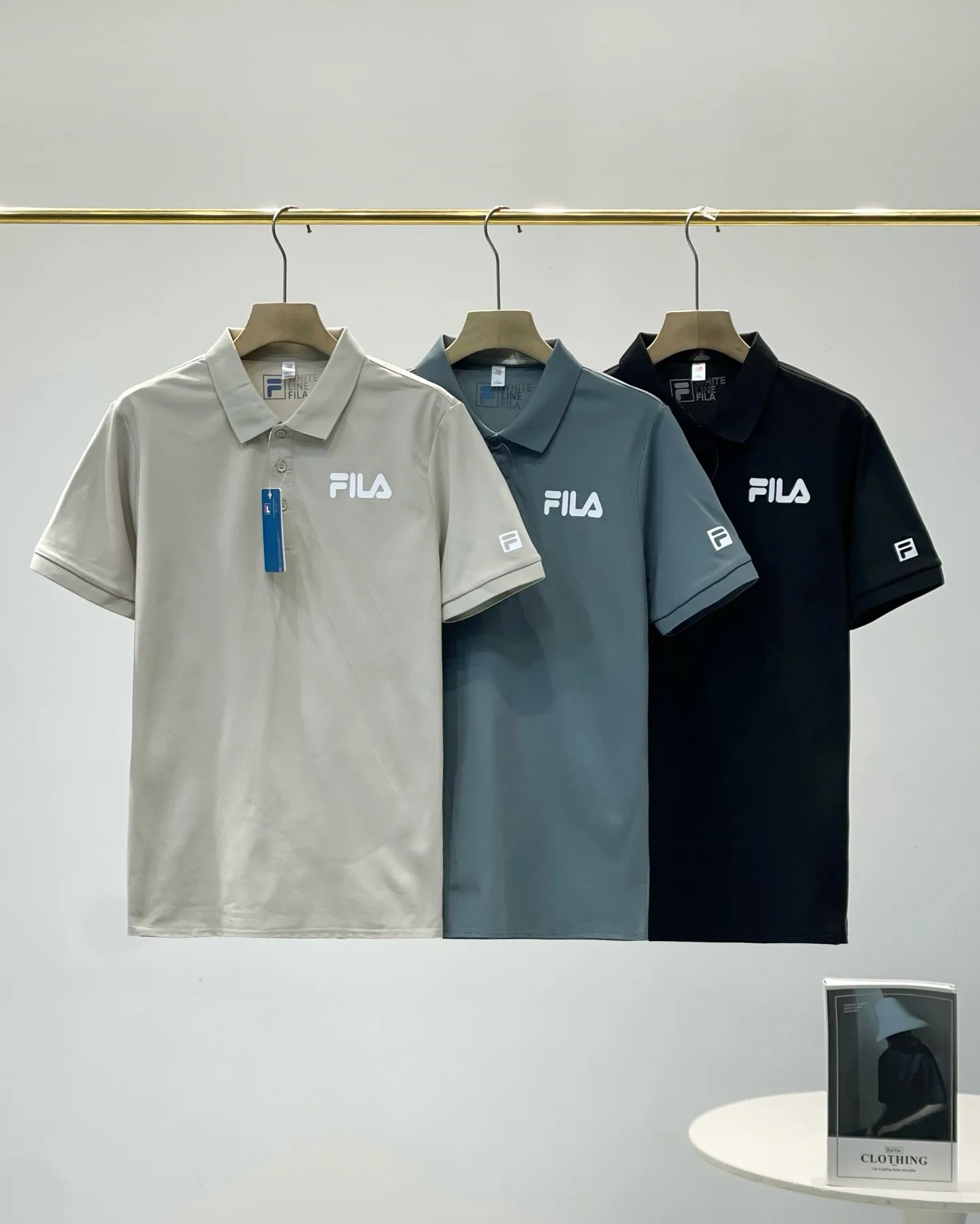 Hier sind einige Fotos des offiziellen FILA Herren-Kurzarm-P-Shirts aus schnelltrocknender Ice Silk – ein neuer Sommer-Style für Business-Casual-Sport und Fitness.