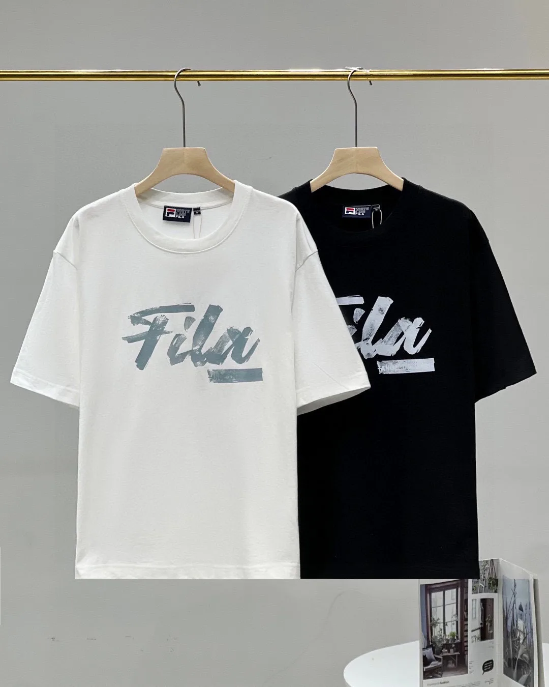 FILA Calligraphy Classic Print, lässiges, locker geschnittenes Paar-Kurzarm-T-Shirt