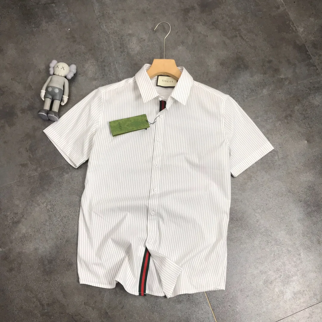 #Guccl Kurzarmhemd GUCCI/Gucci Neujahrs-Kurzarmhemd mit Bienenstickerei und Streifen am hinteren Kragen