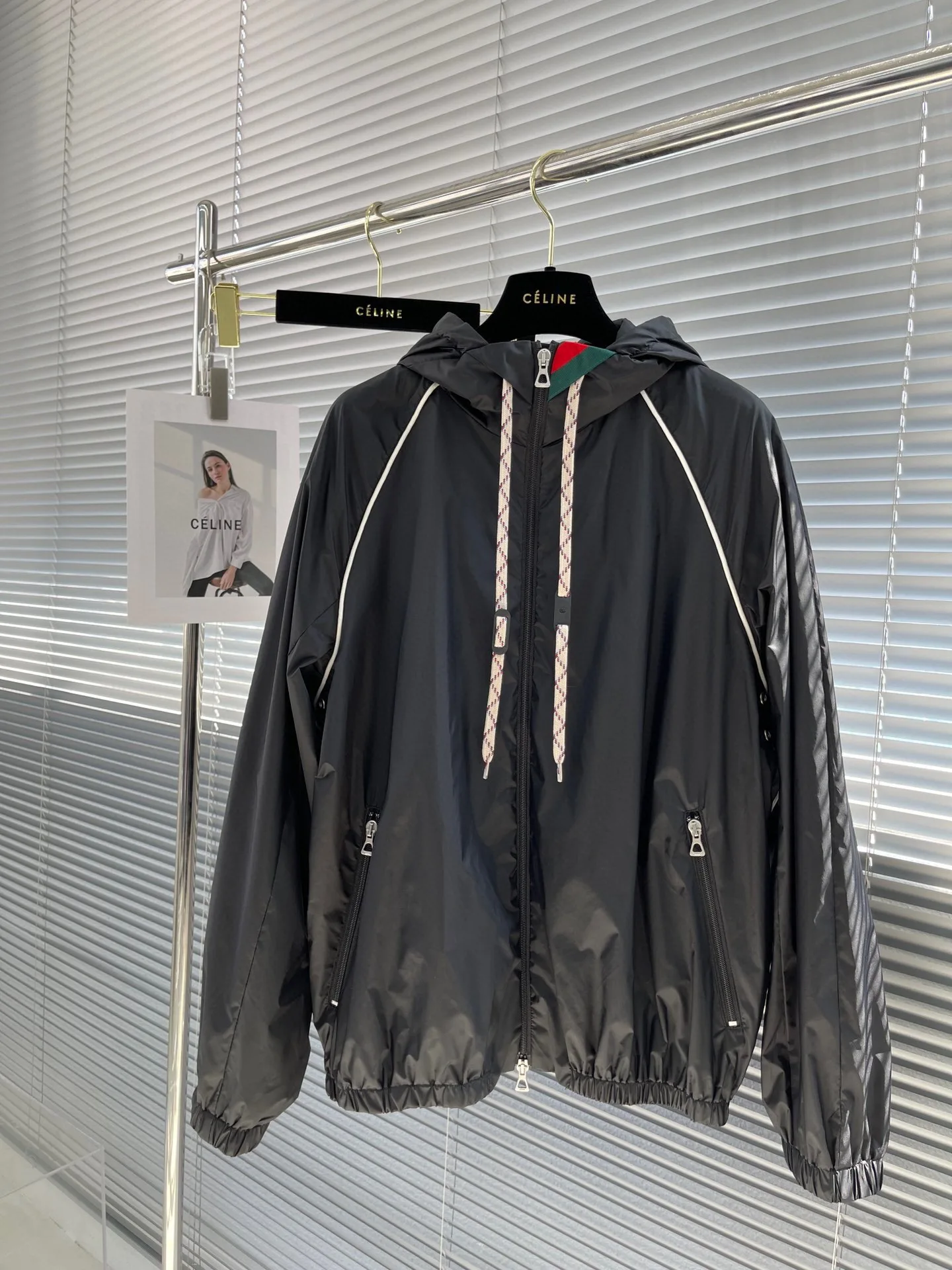 (Premium Edition) Gucci Line Design Kapuzen-Windjacke mit Reißverschlusstasche und lockerer Passform