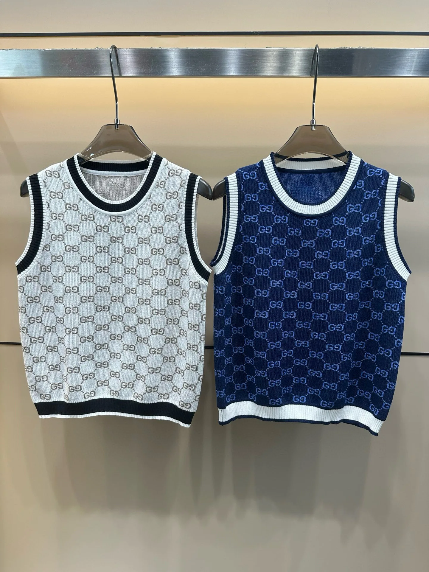 Hochwertige Gucci Weste im weißen Strick-Jacquard-Stil