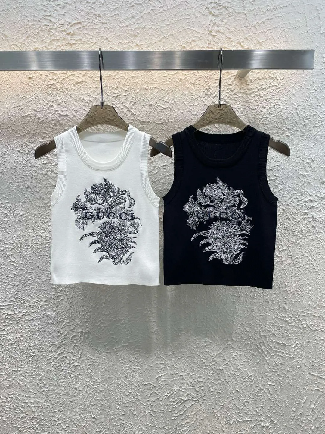 Hochwertige Gucci-Weste im weißen Strick-Monogramm-Stil