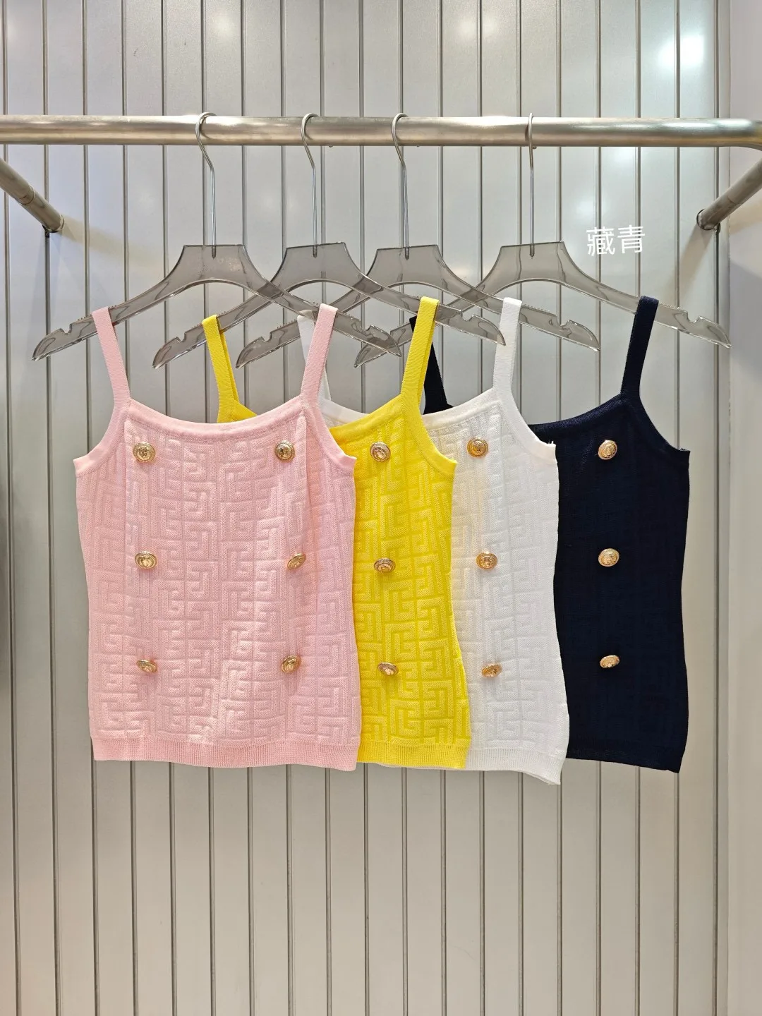 Balmain Monochromes Jacquard-Zweireiher-Strick-Camisole mit Goldknöpfen