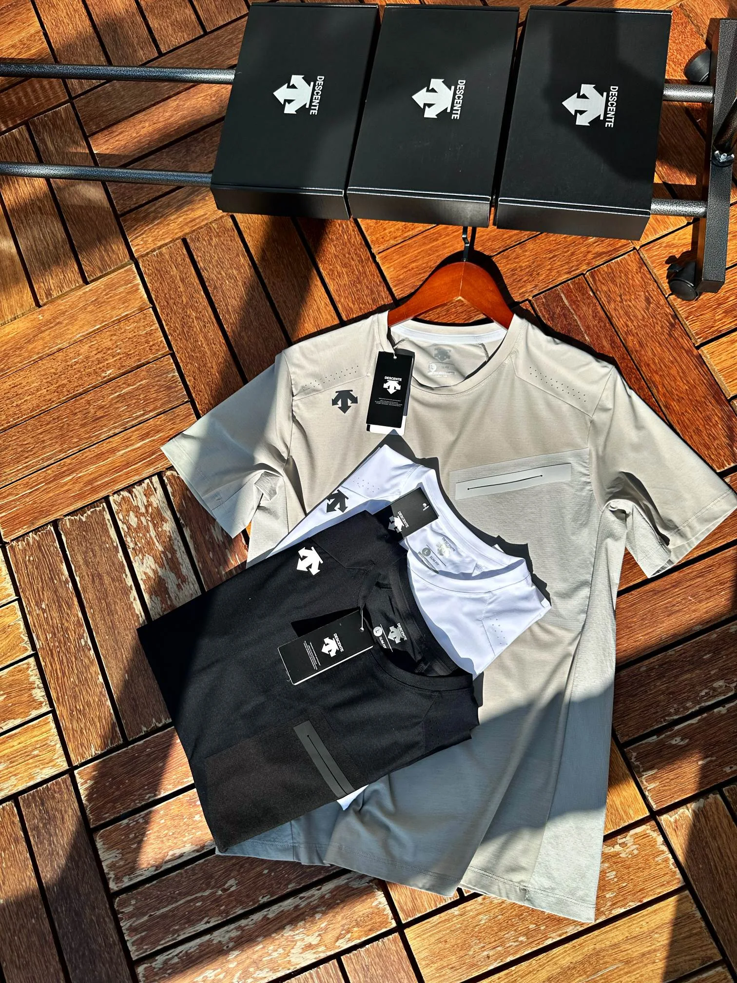 DESCENTE Herren Sommer Fitness T-Shirt aus schnelltrocknender, atmungsaktiver Ice Silk Kurzarm.
