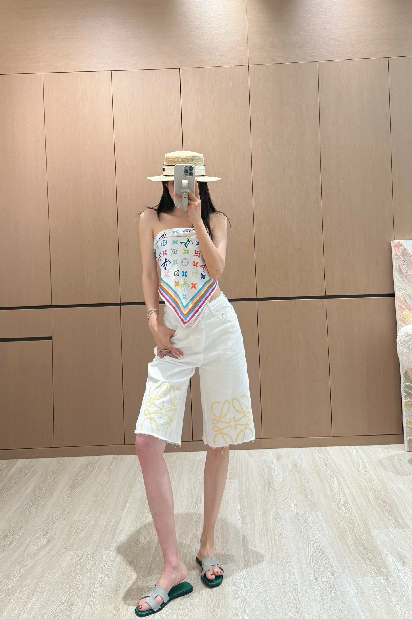 Hochwertige Loewe Shorts im weißen Denim-Logo-Stil