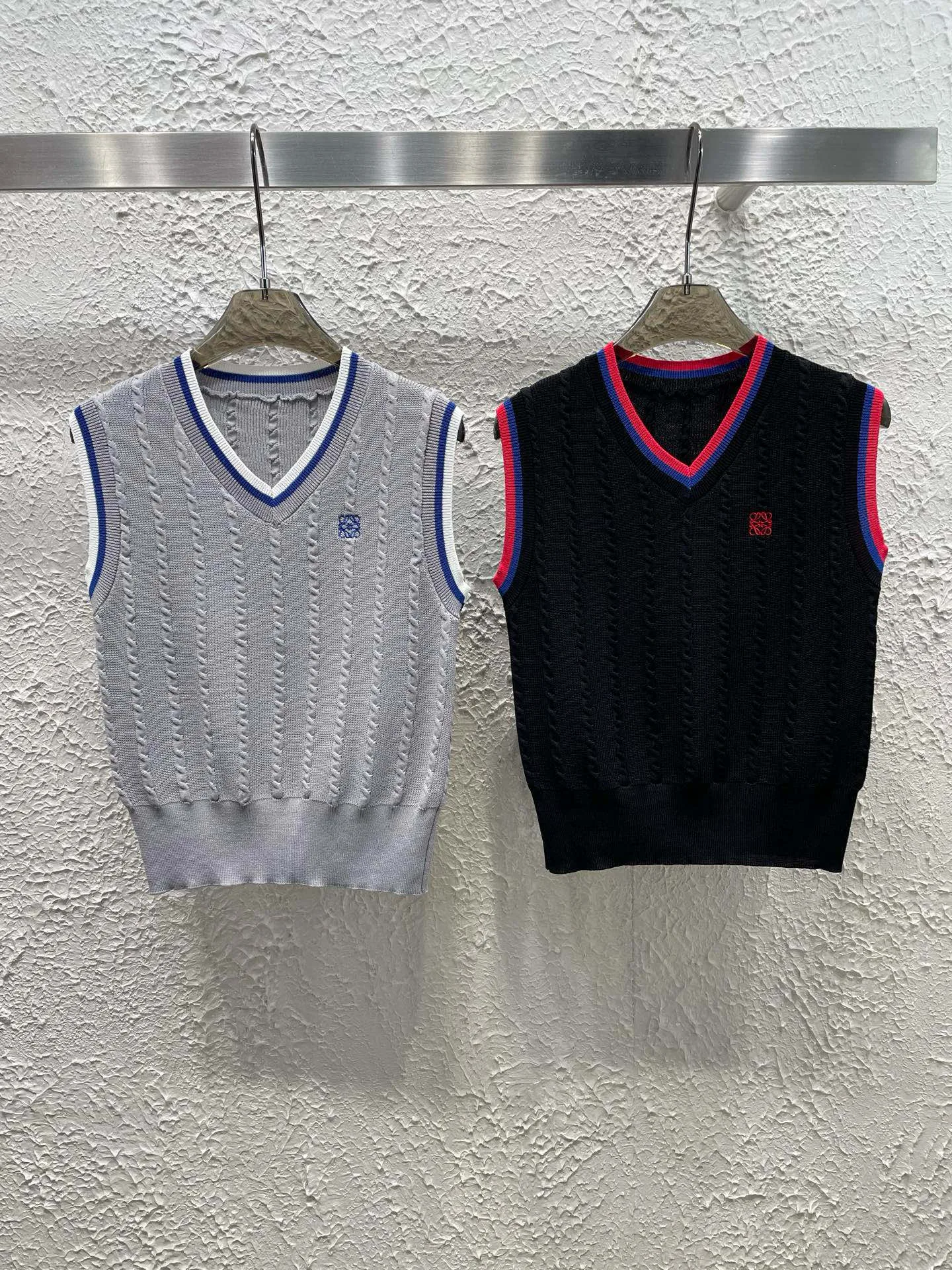 Loewes ikonische Zopfmuster-Weste mit V-Ausschnitt und Logo-Stickerei