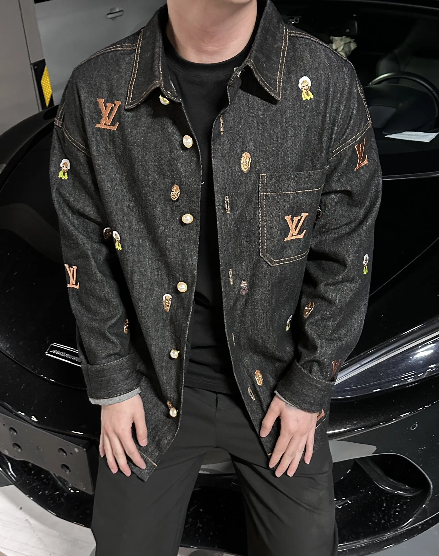 Hochwertige Louis Vuitton Jacken im Denim-Stil mit Stickerei