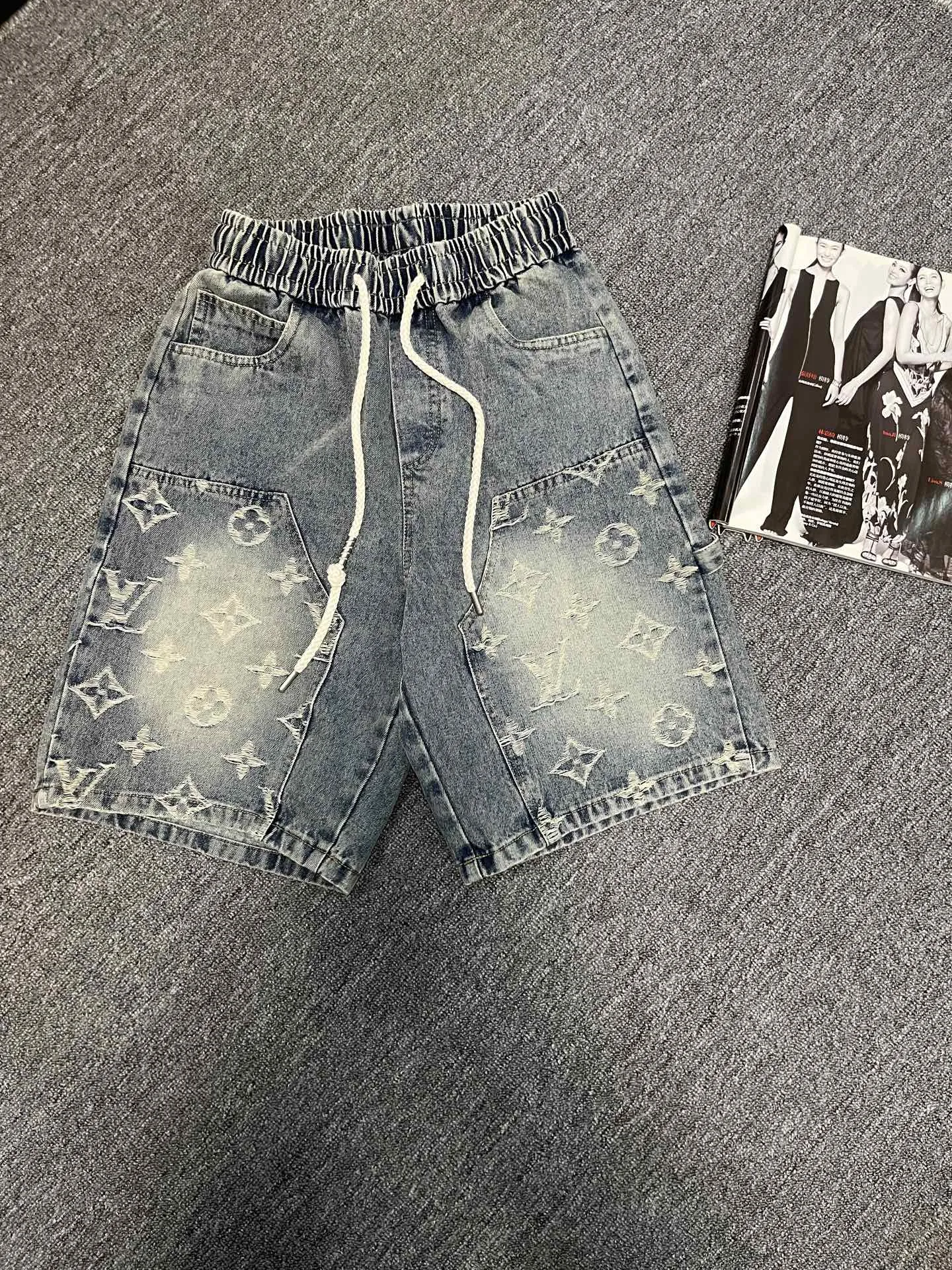 Die neuen Louis Vuitton Sottfrunk-Jeansshorts für den Sommer (SS/Sommer) sind mit einem durchgehenden Monogramm-Logo versehen. Hochwertiger Denimstoff mit verwaschenem und Used-Look. Unisex-Style.