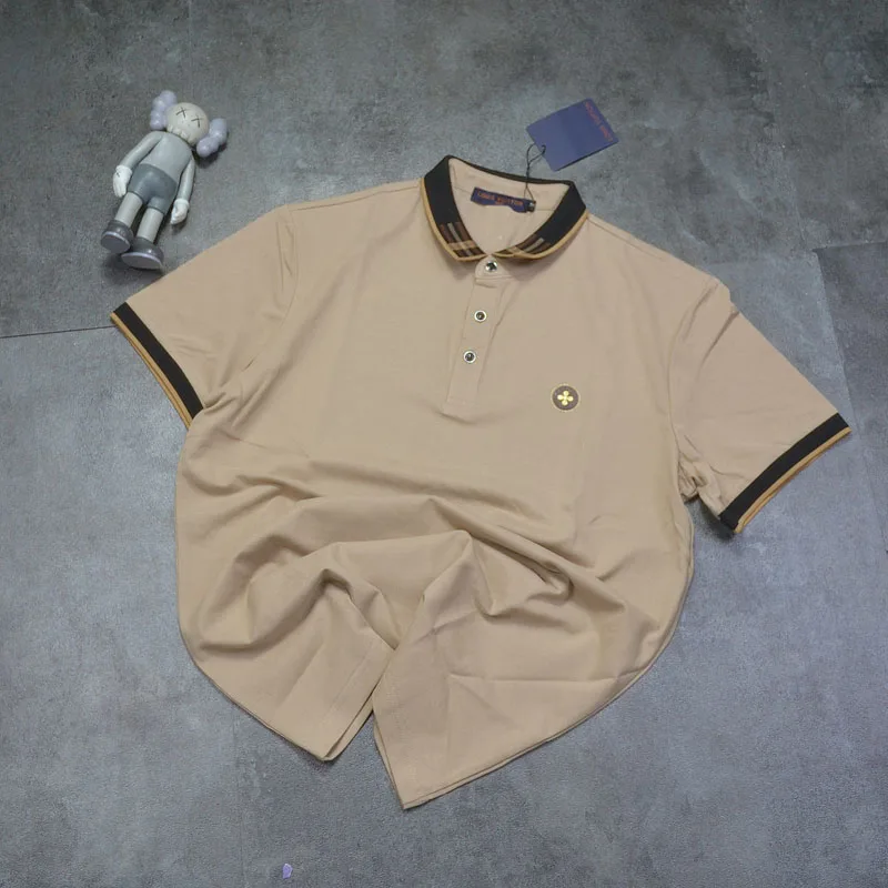 Neueste Version von LOUIS VUITTON / Louis Vuitton, neues kariertes T-Shirt mit Revers und Kirschblüten-Heißprägung, lässiges Herren-T-Shirt mit Revers. Piqué-Stoff, klassisches Poloshirt.