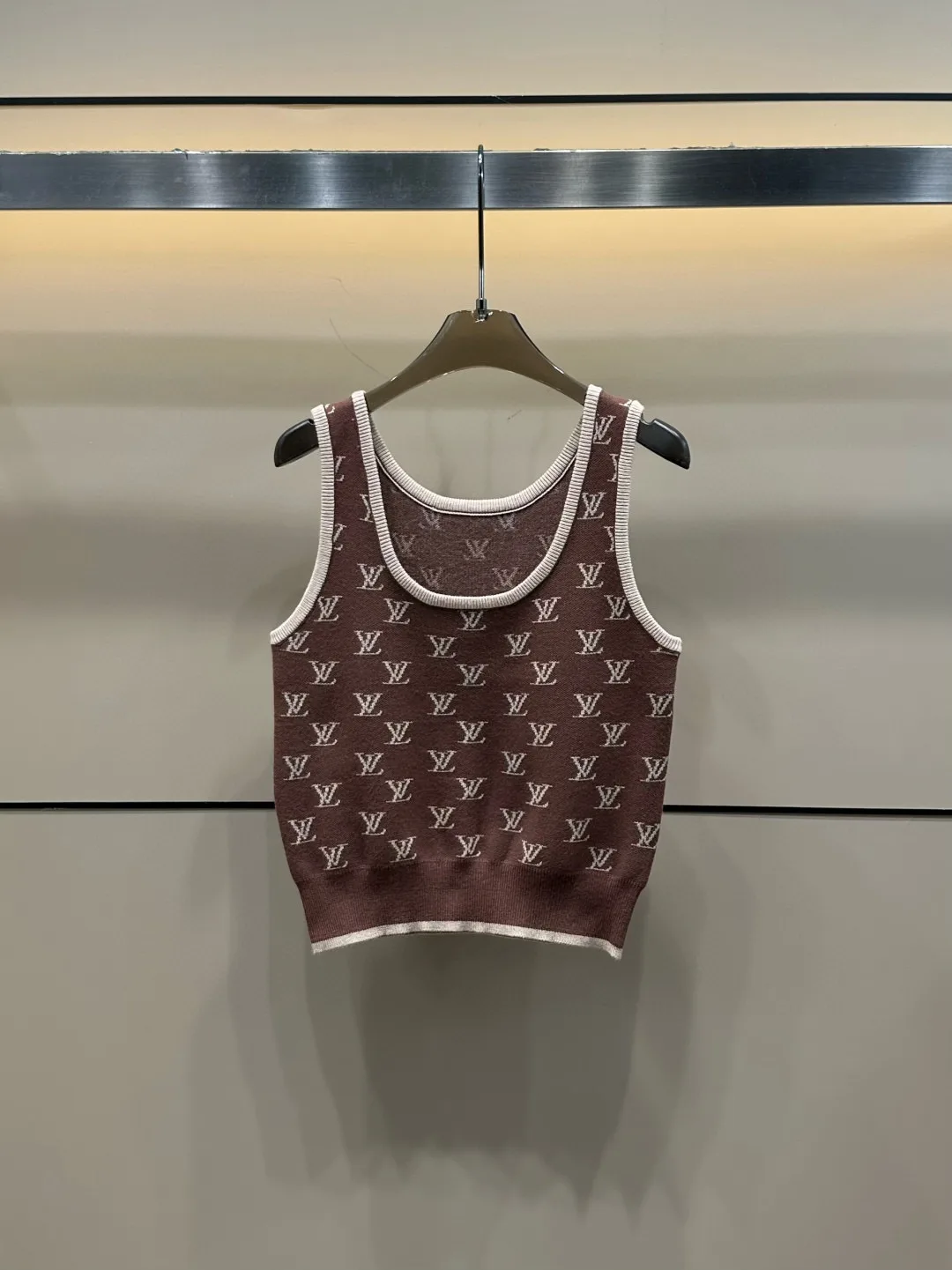 Hochwertige Louis Vuitton Weste Braun Strick Jacquard Luxus