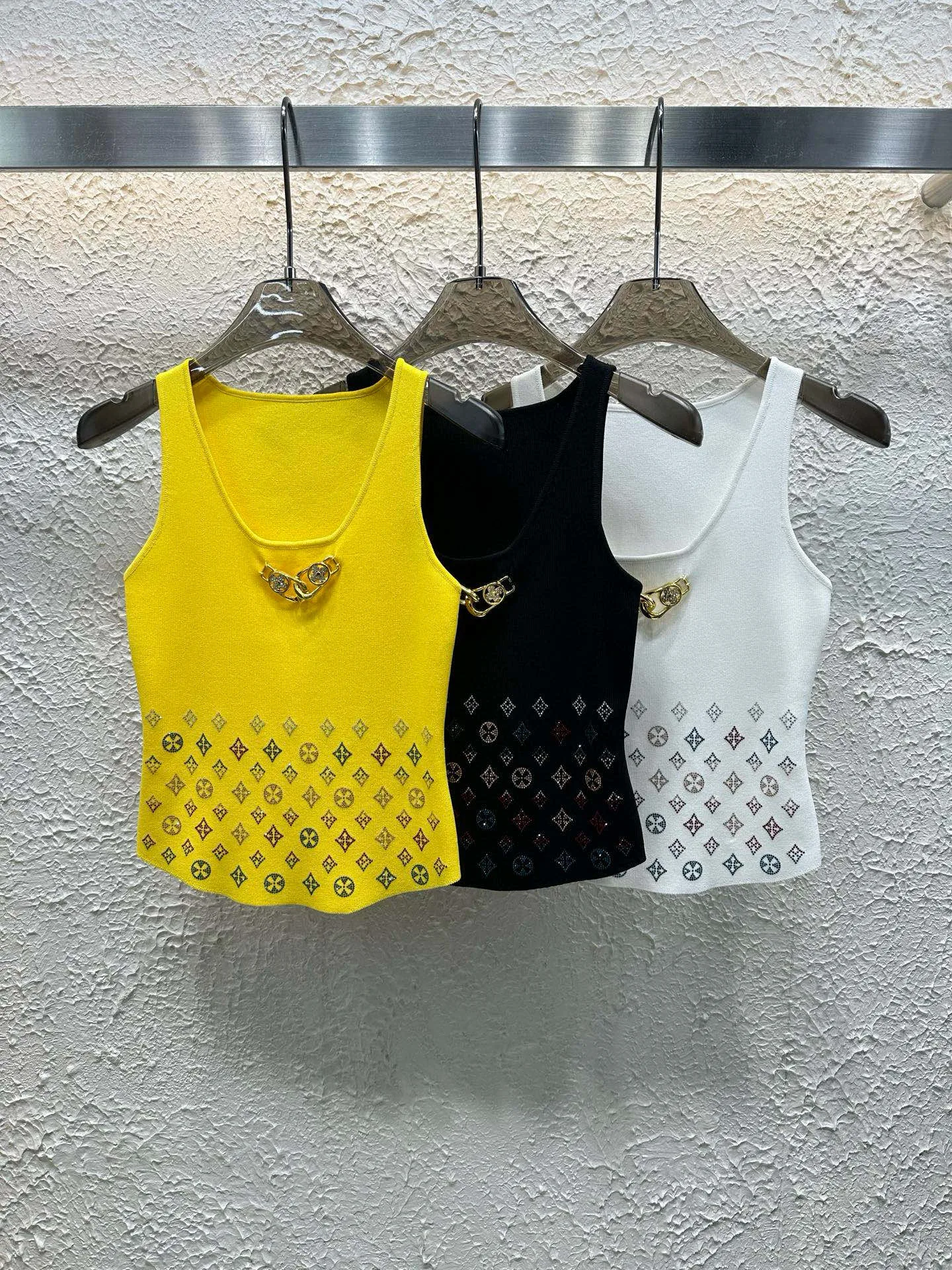 Hochwertige Louis Vuitton Weste Gelb Strick Strass Luxus