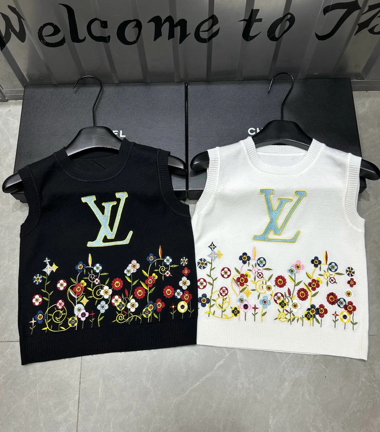 Hochwertige Louis Vuitton Weste im schwarzen Strick-Stickerei-Stil
