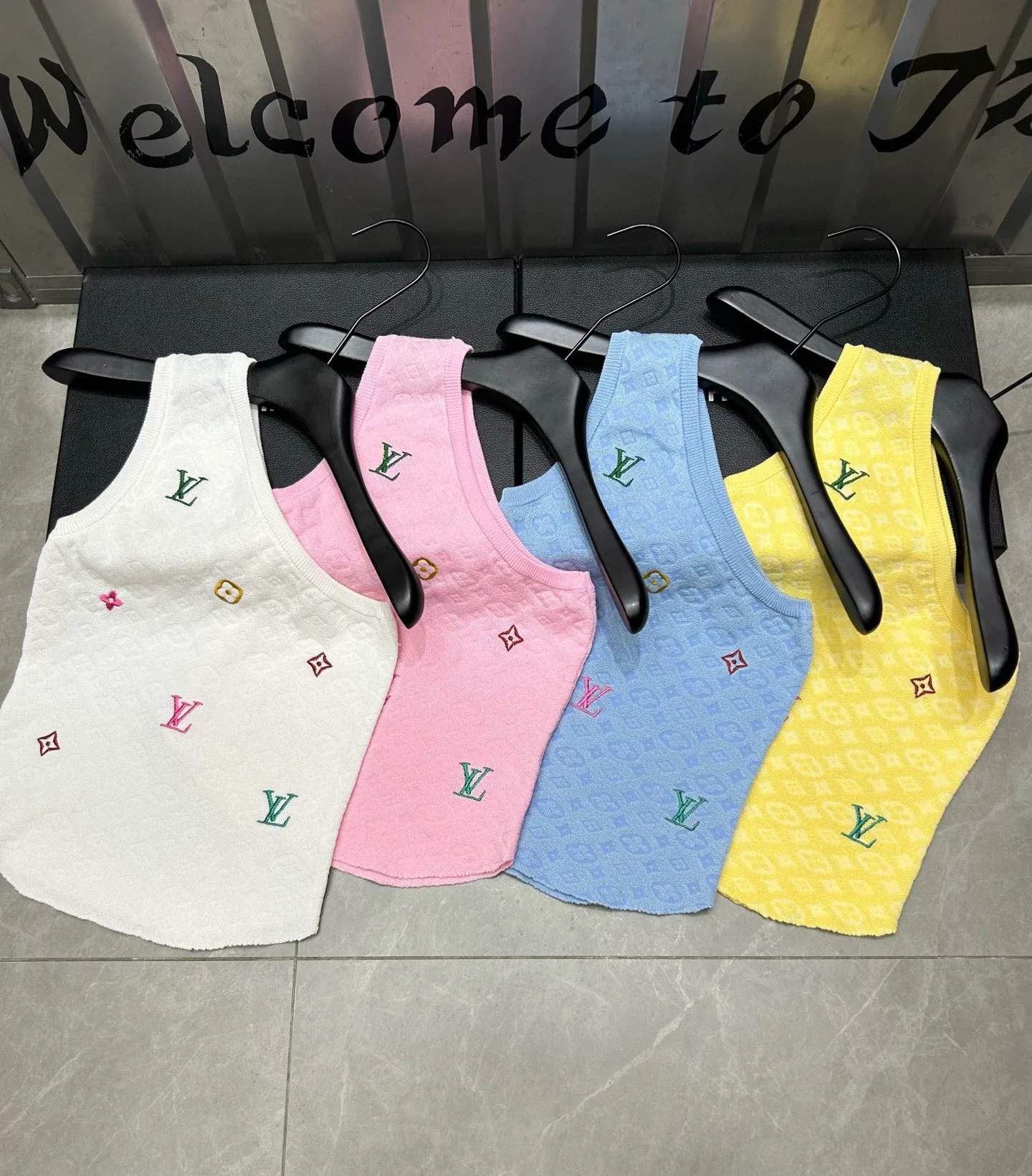 Hochwertige Louis Vuitton Weste im weißen Strick-Stickerei-Stil