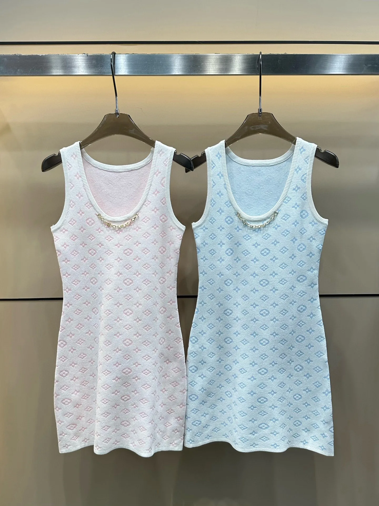 Louis Vuitton LV Esel-Westenkleid aus Jacquard-Kettenstrick mit vierblättrigem Kleeblatt