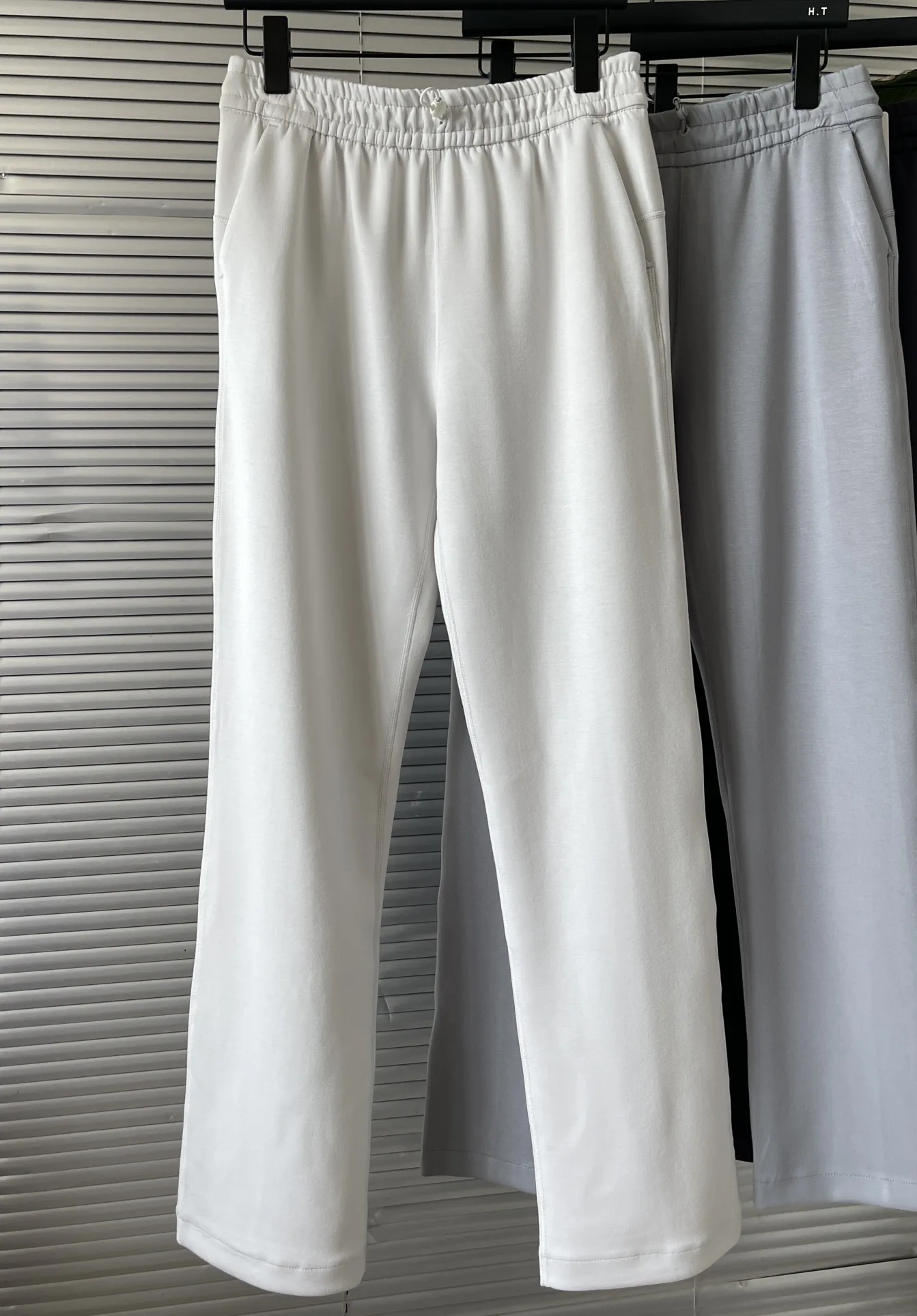 Diese Hose ist keine typische Hose mit weitem Bein. Die Länge von Taille zu Bein ist deutlich länger, und die Mittelnaht hinten sorgt für einen schlankeren Effekt und ein geraderes, längeres Bein. Der breite Bund mit Kordelzug ermöglicht eine individuelle Anpassung und macht die Hose bequem, anpassungsfähig und leicht an- und auszuziehen. Die gerade, leicht weite Silhouette verleiht einen starken, aber dennoch sanft-femininen Touch und schafft die perfekte Balance zwischen Freizeit- und Business-Look.