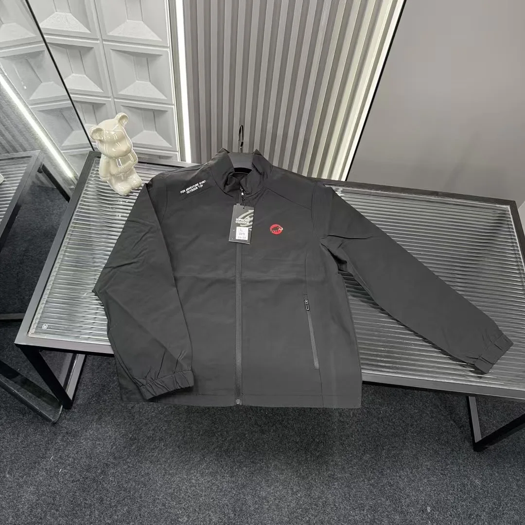 Empfohlene neue Jacke: Mammut Red Logo, Softshelljacke mit geraden Schultern und Stehkragen. Alle drei Etiketten sind identisch mit denen auf der offiziellen Website. Zoomen Sie hinein, um Details zu sehen. Foto mit der Originalkamera aufgenommen.