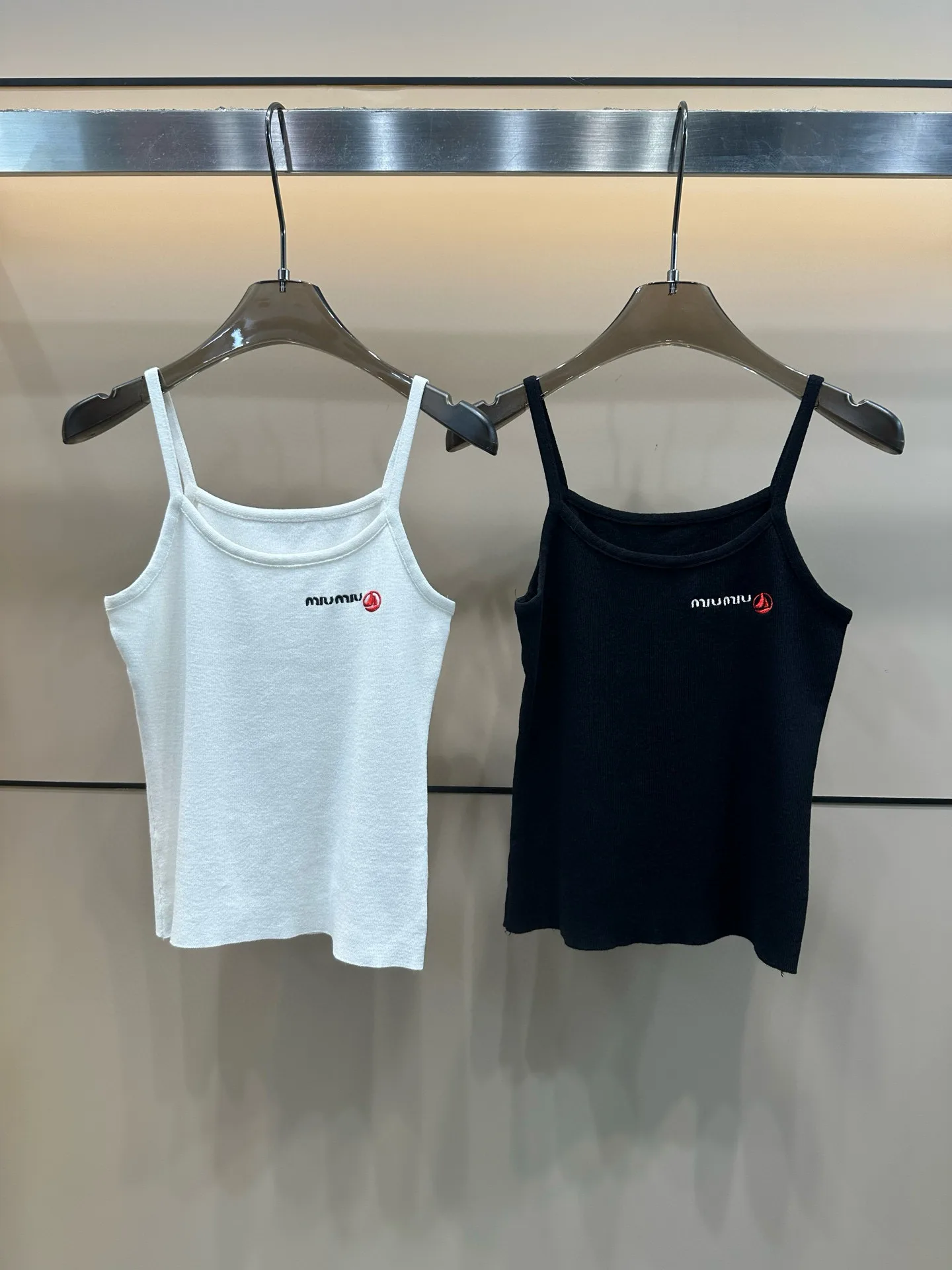 Miumiu Miu – Strick-Camisole mit kleinem Segelboot-Stickerei-Schriftzug