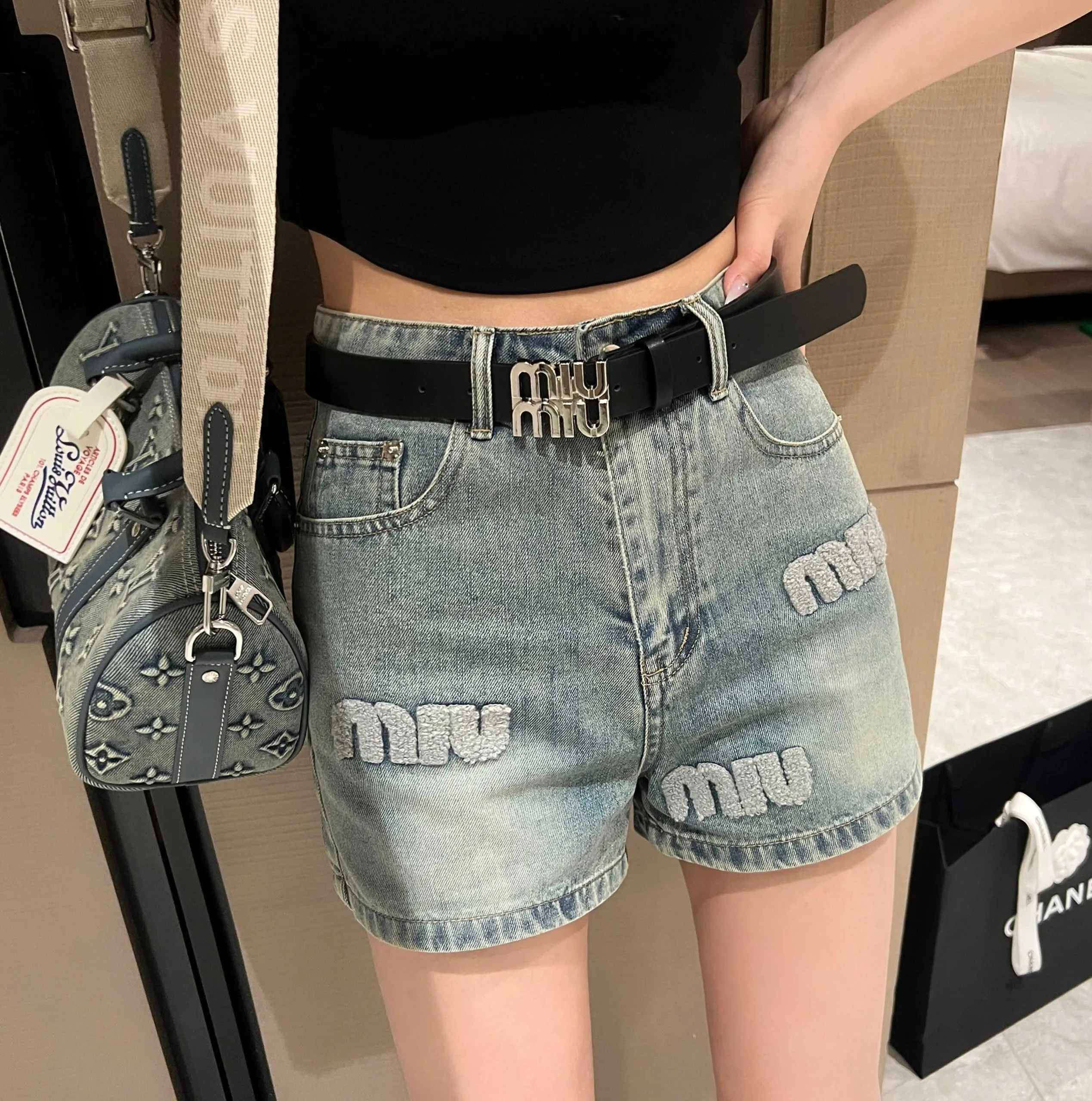 MIU MIU/Miu Miu [Jeansshorts mit Handtuchstickerei und Gürtel]