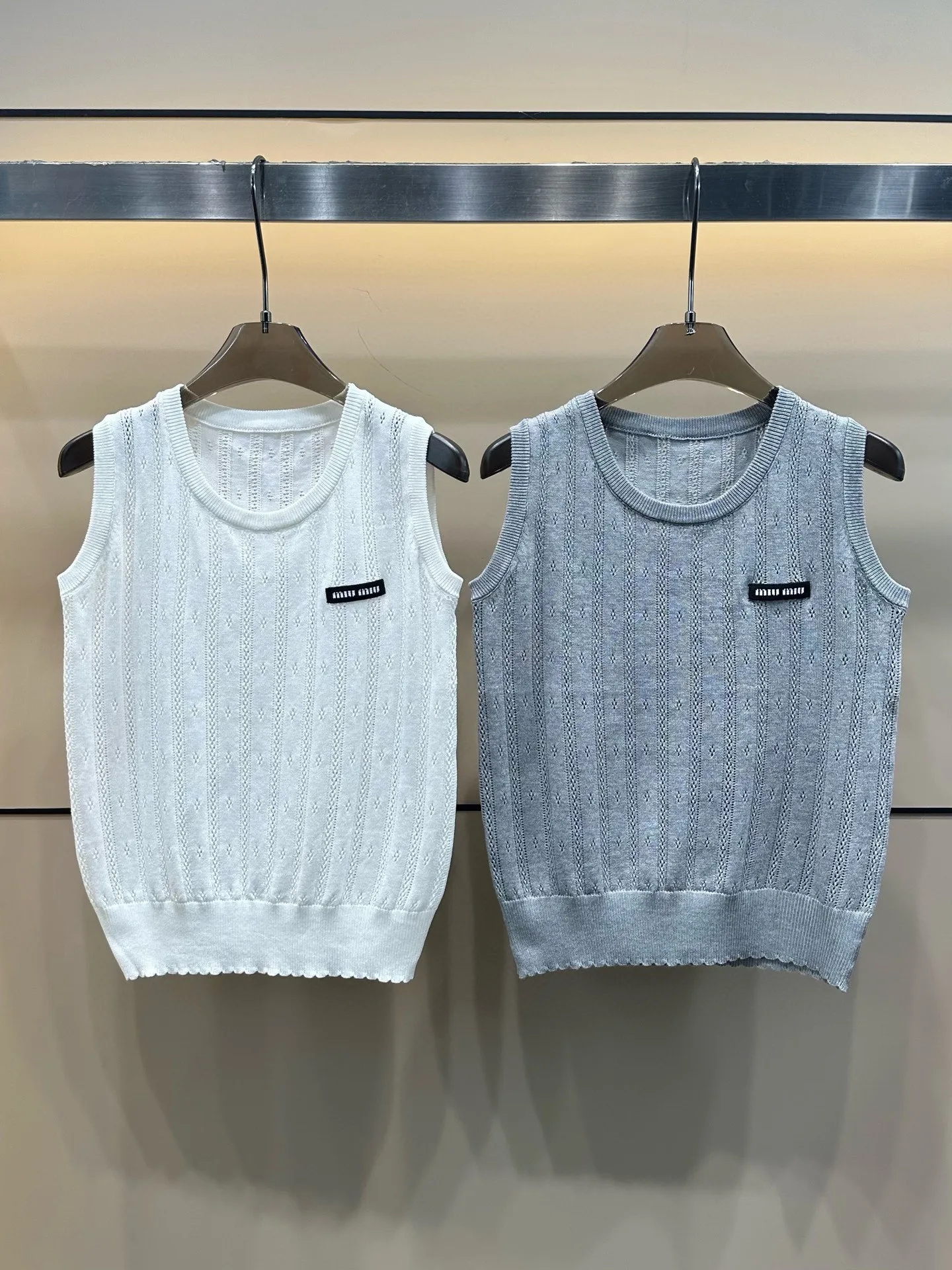 Hochwertige Miu Miu Weste aus weißer Stricklogo-Kollektion