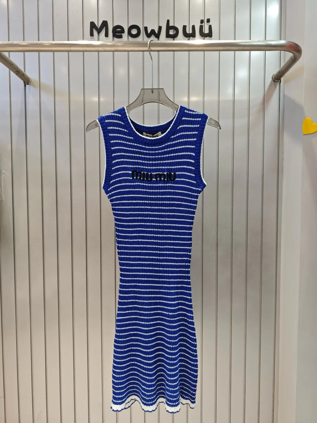 Miumiu Miu Miu Strickkleid mit Logostickerei und Streifen