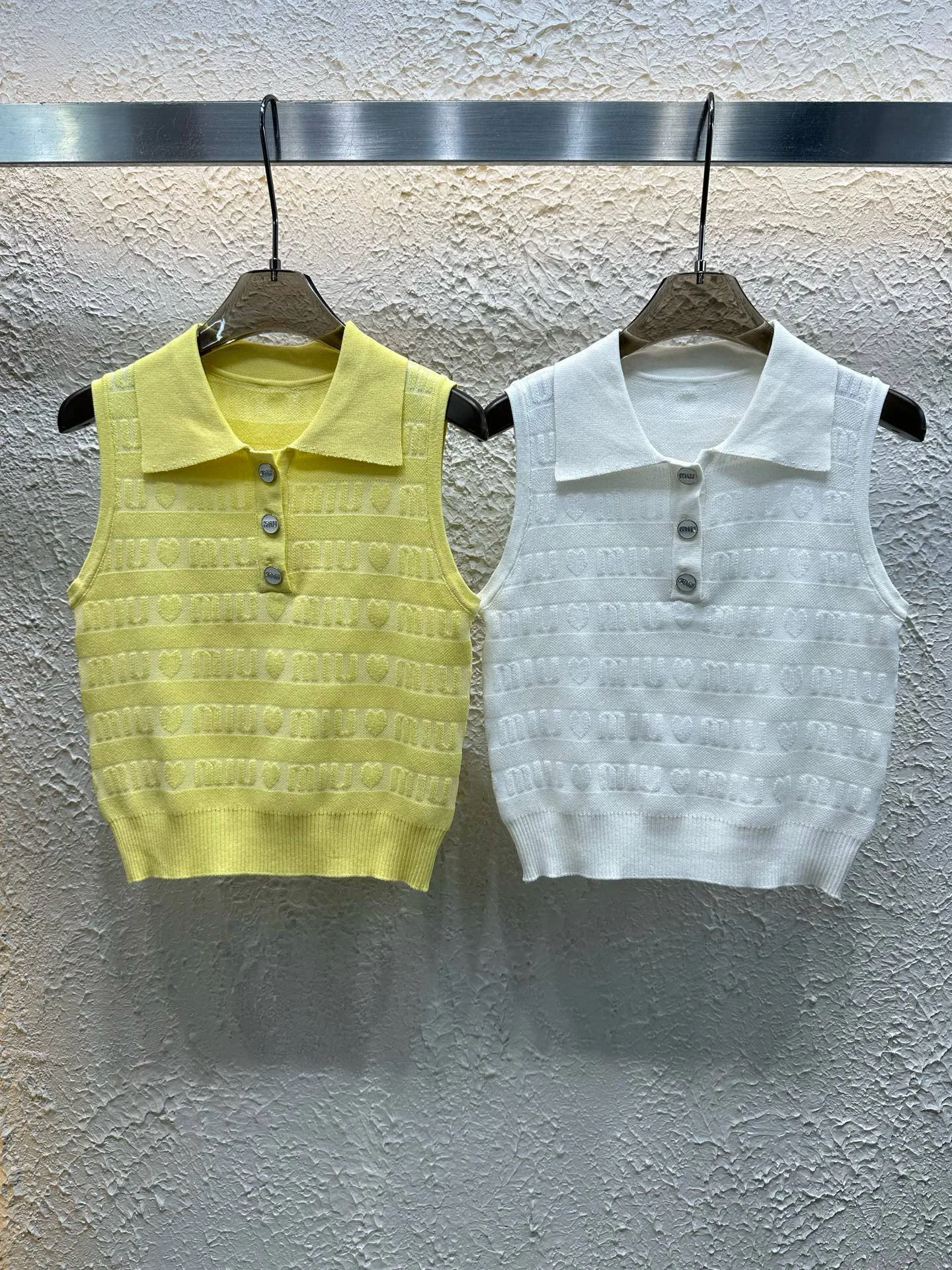 Hochwertige Miu Miu Weste Gelbe Strick-Jacquard-Kollektion