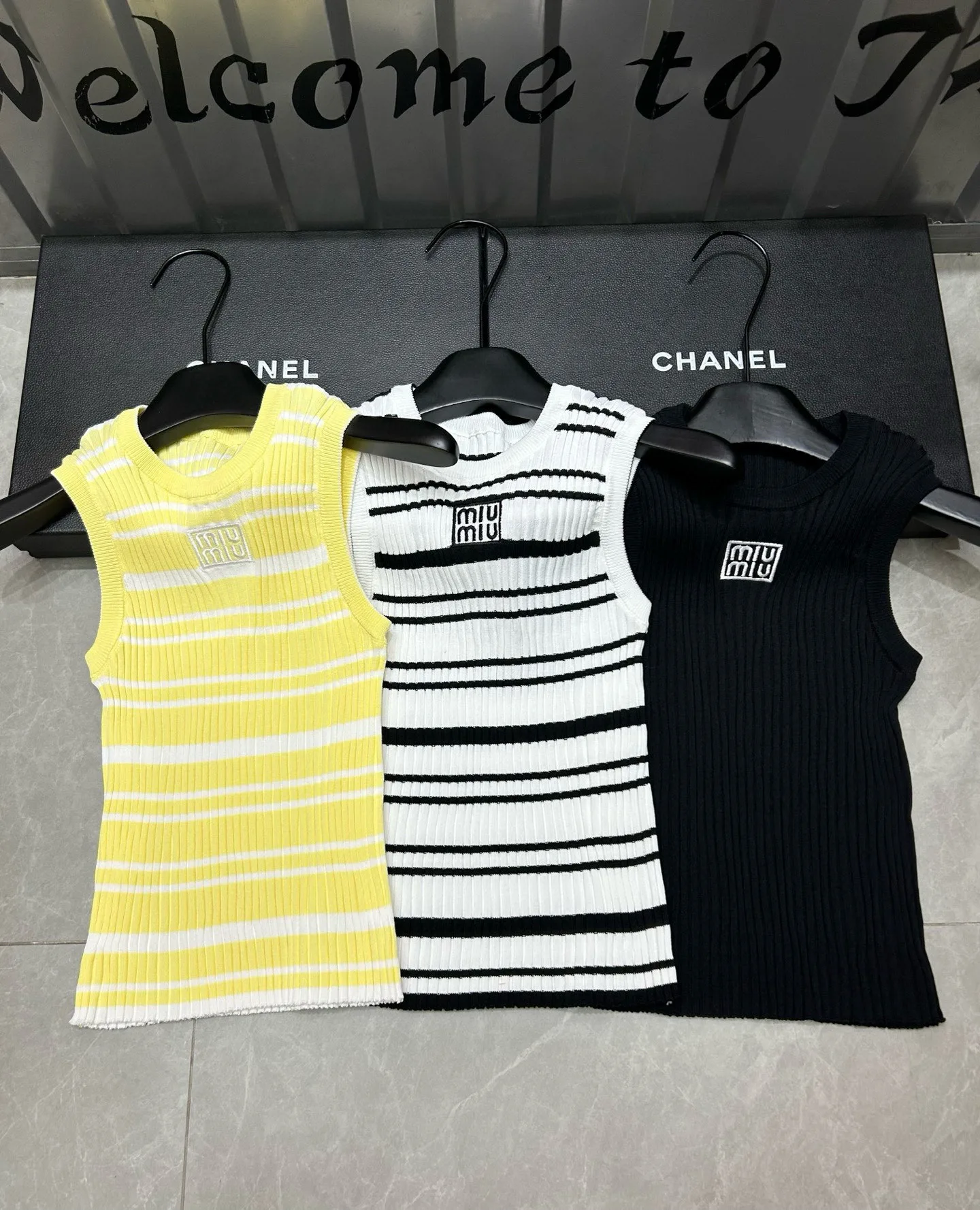 Hochwertige Miu Miu Weste Gelbe Strick-Streifenkollektion