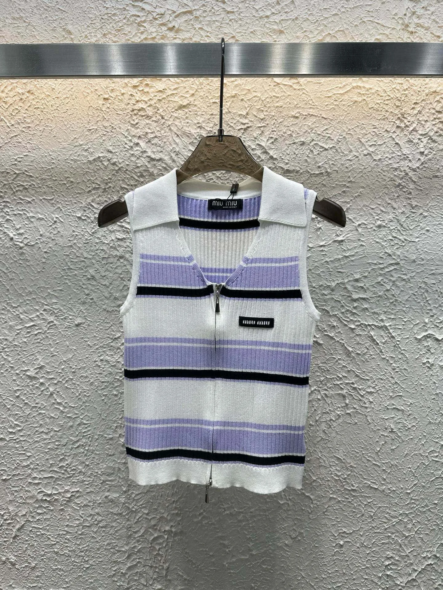 Hochwertige Miu Miu Weste im lila Strick-Logo-Stil