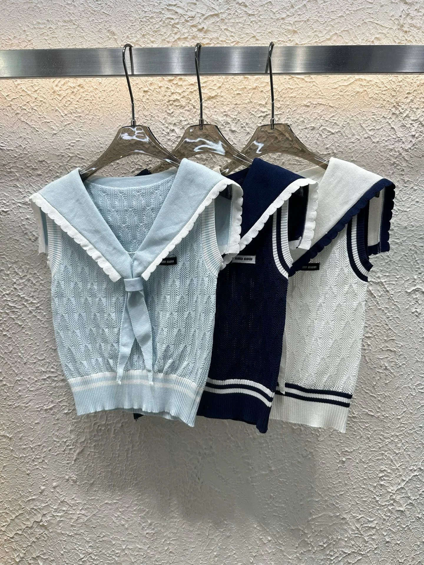 Hochwertige Miu Miu Weste im Marine-Strick-Stickerei-Stil