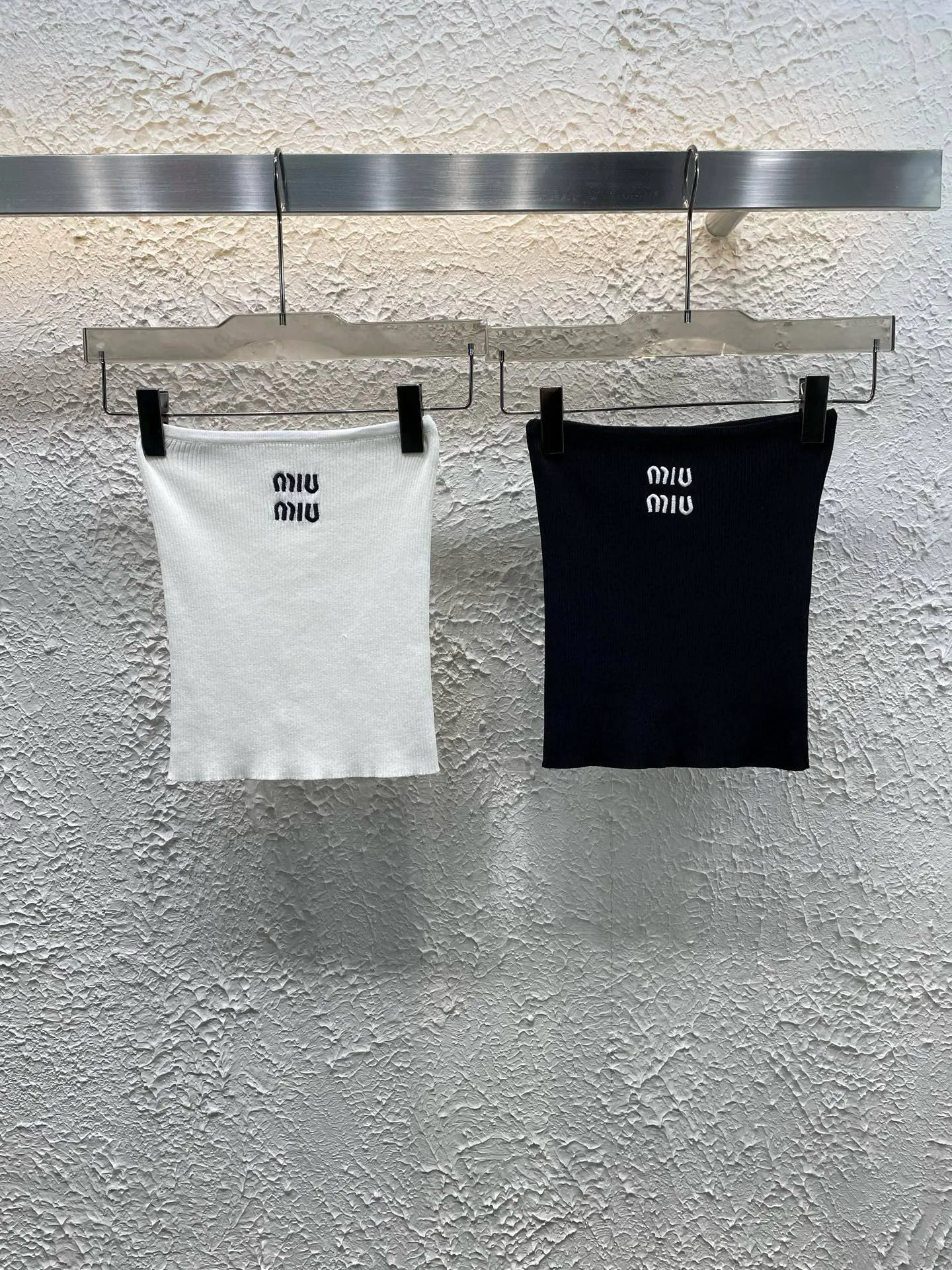 Miumiu Miu Miu Strick-Tube-Top mit aufgesticktem Schriftzug