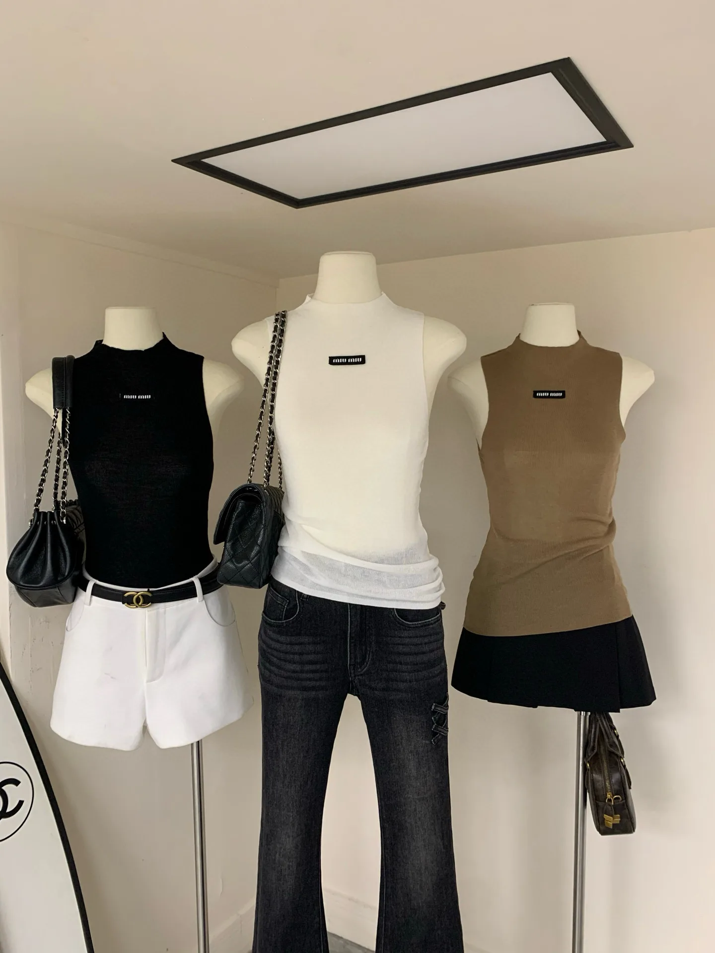 Miumiu Strickweste mit Stehkragen und kleinem Logo