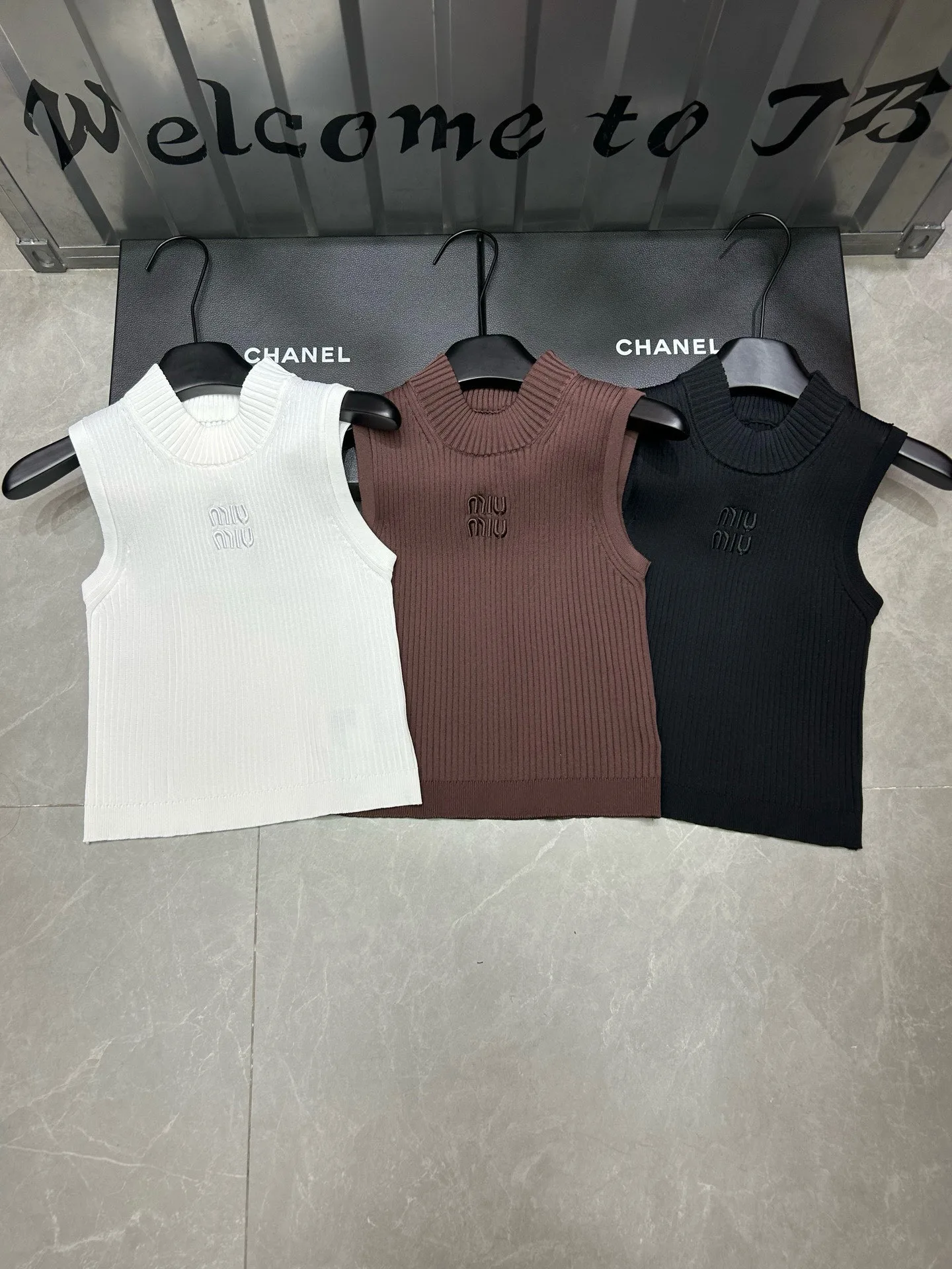 Hochwertige Miu Miu Weste in weißem Strick-Logo-Stil