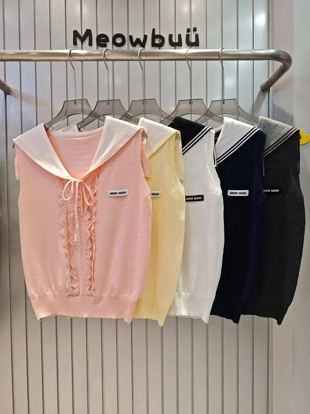 Hochwertige Miu Miu Weste Navy Strick Logo Luxus