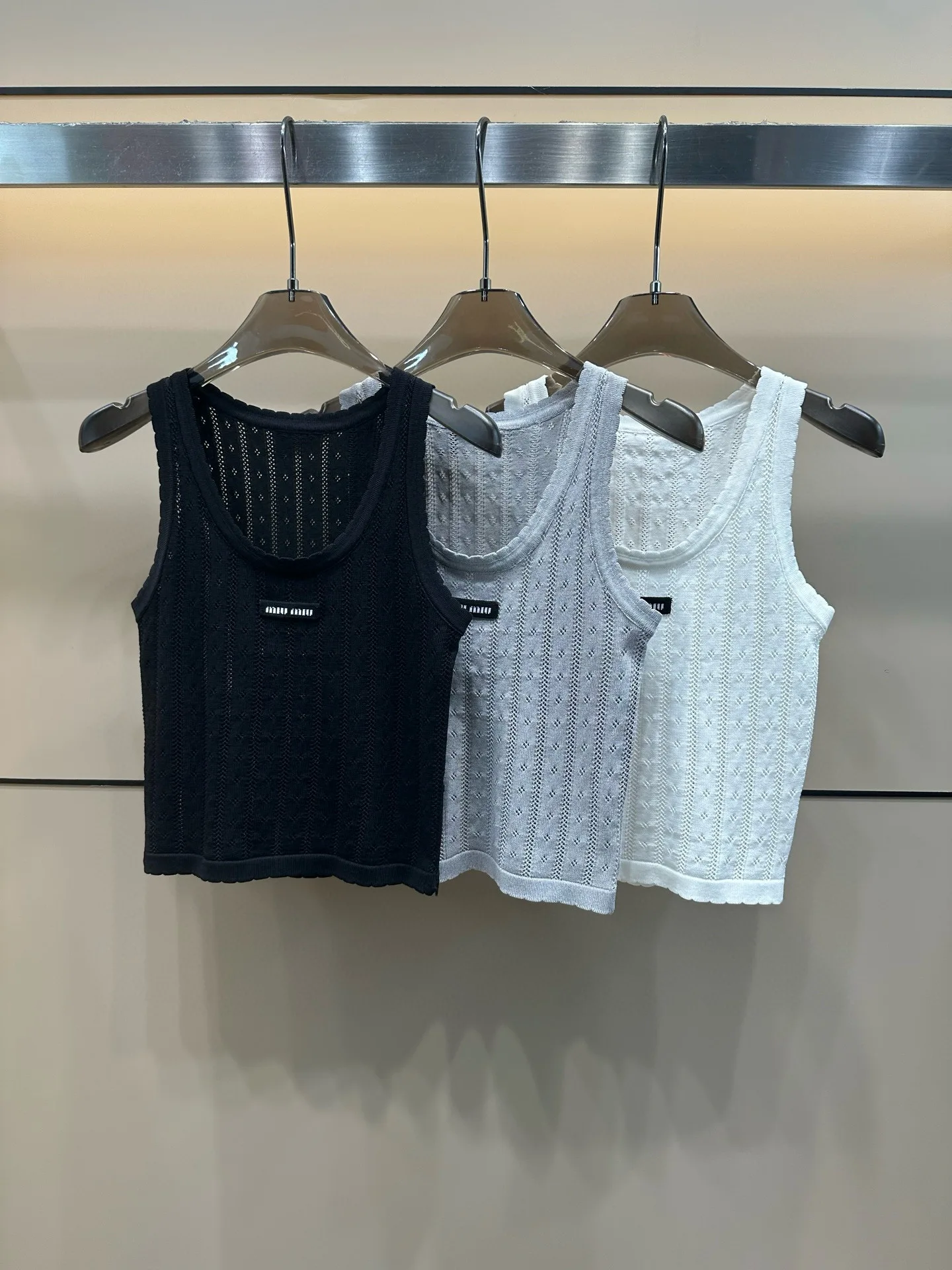 Hochwertige Miu Miu Weste Schwarz Strick Logo Kollektion