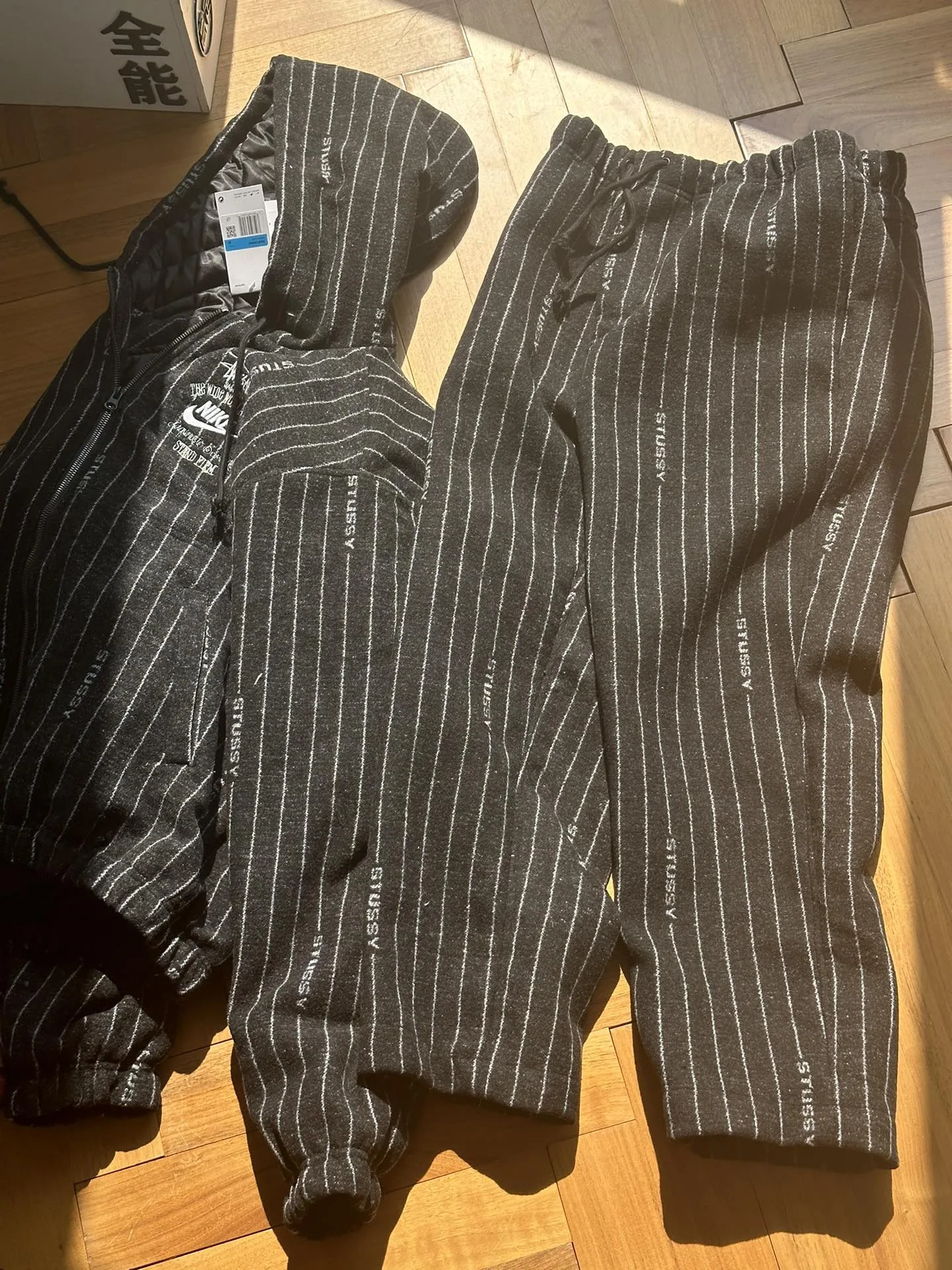 Nike x Stussy Collaboration – Gestreifte, gerade geschnittene Woll-Freizeithose. Unisex, Premium-Version.
