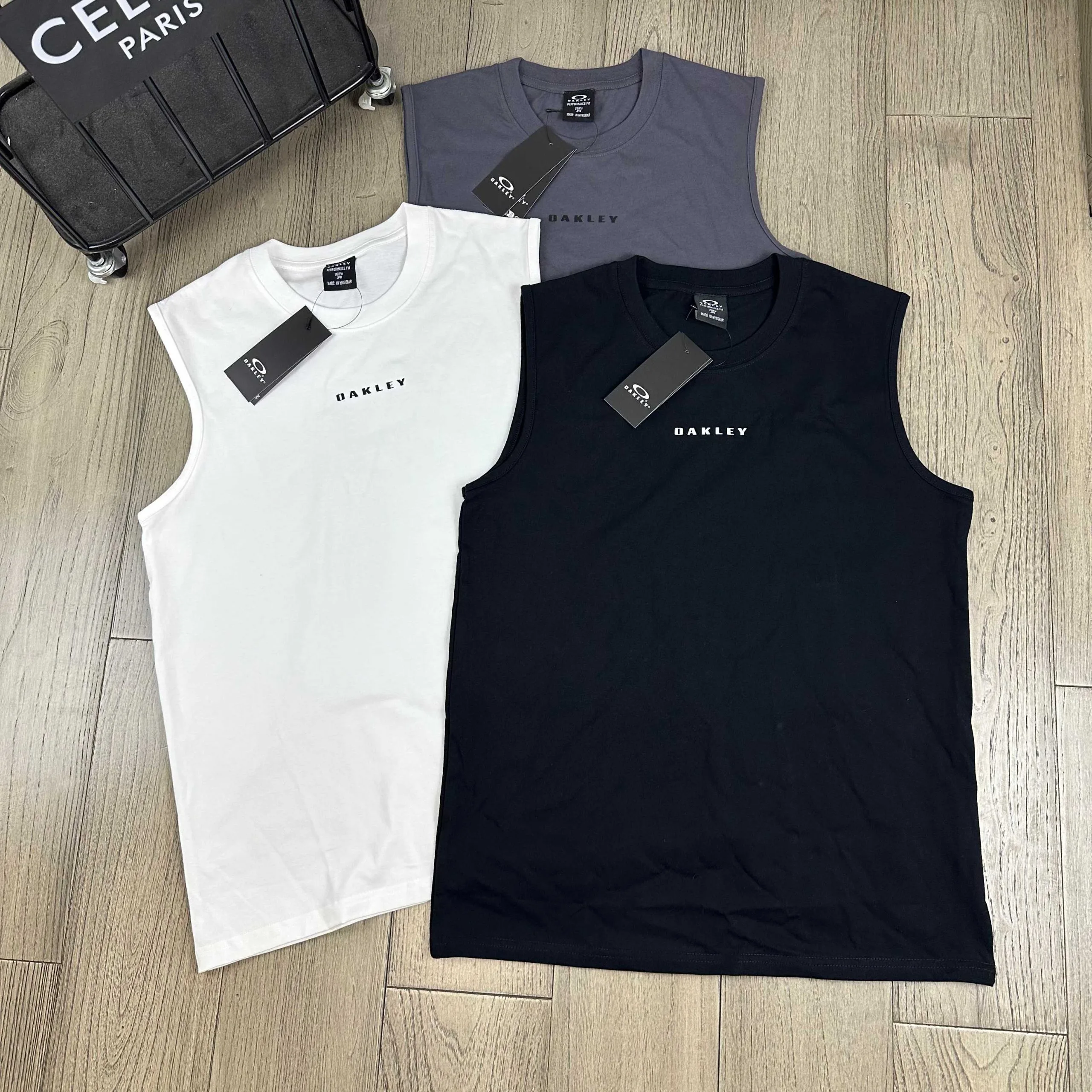 Hochwertige Oakley Ärmelloses schwarzes Baumwoll-Logo-Kollektion